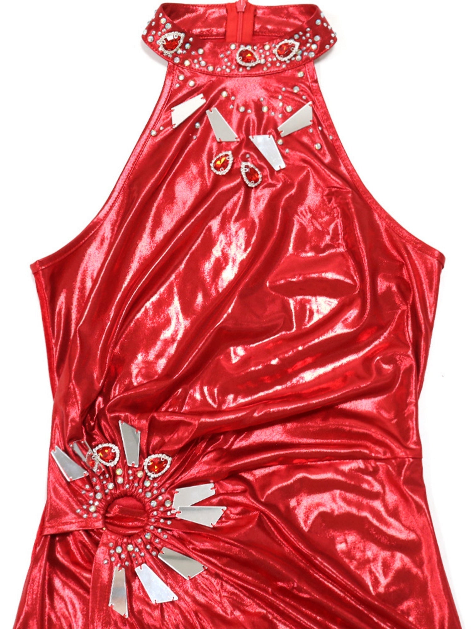 Robe de soirée brillante en velours sans manches à fente haute ornée de strass