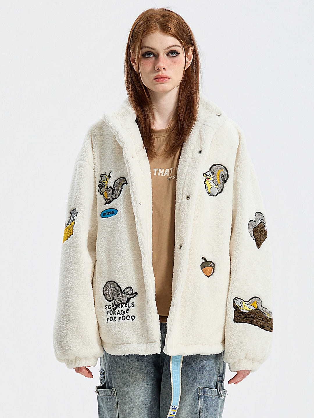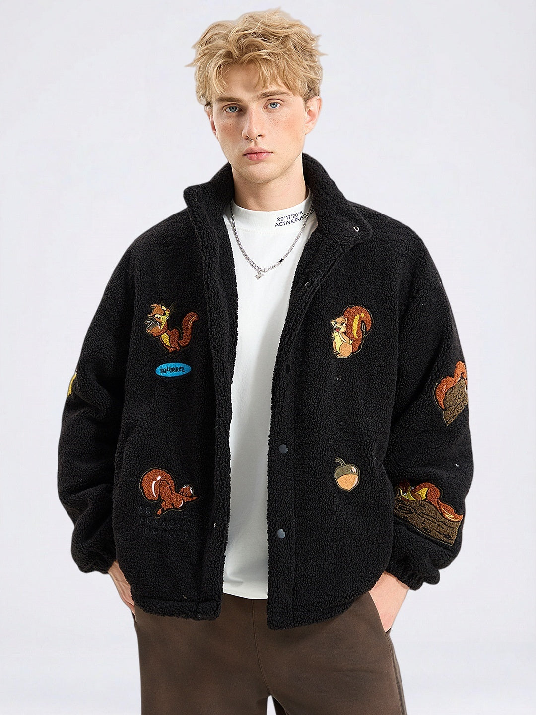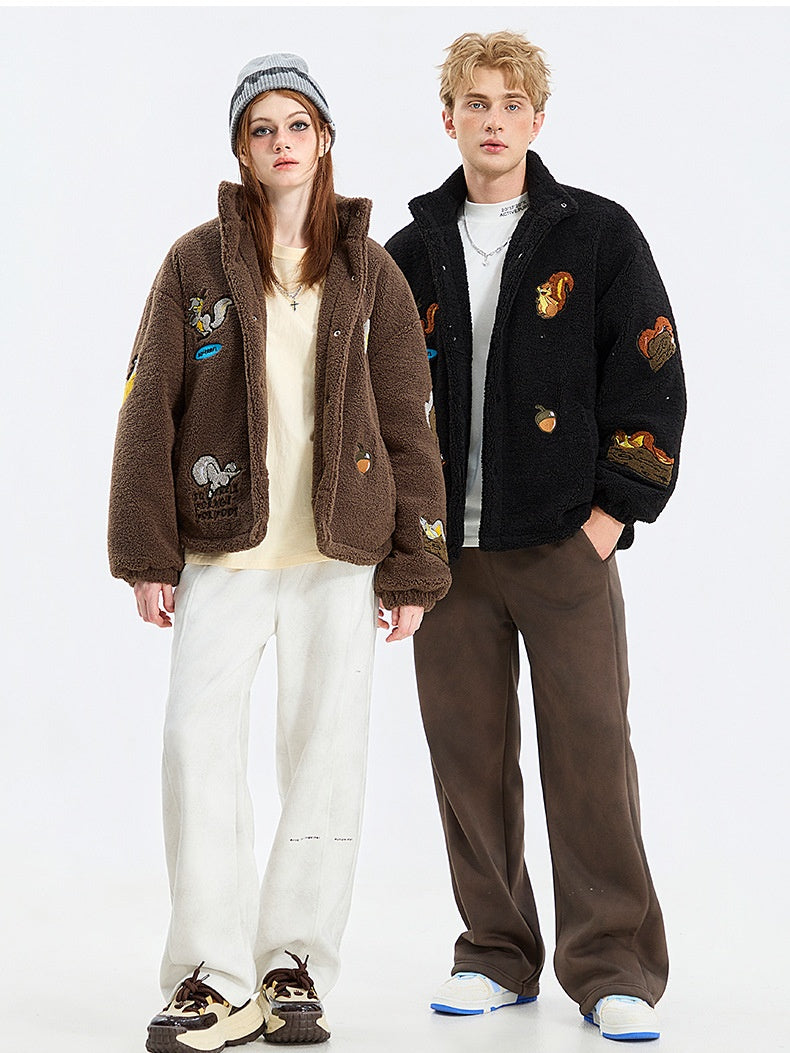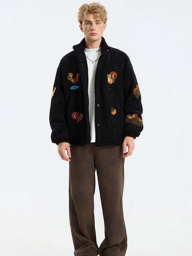 Veste coupe-vent à col montant et imprimé écureuil
