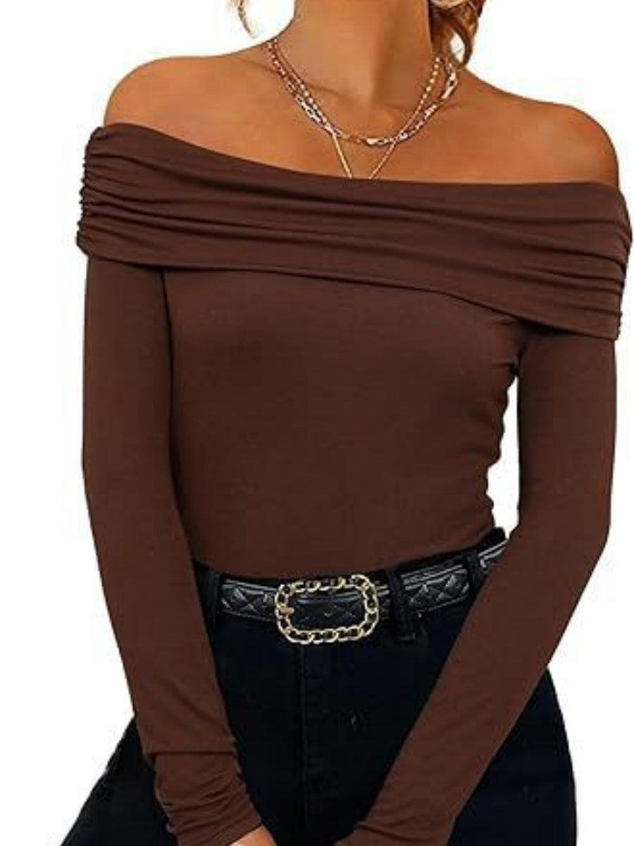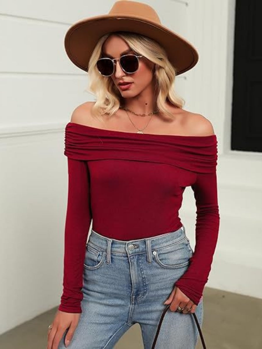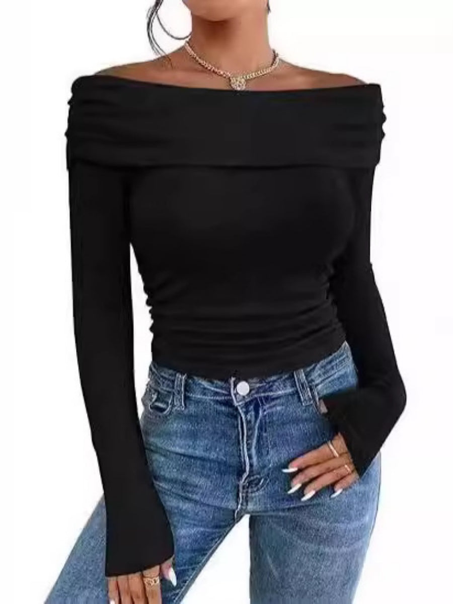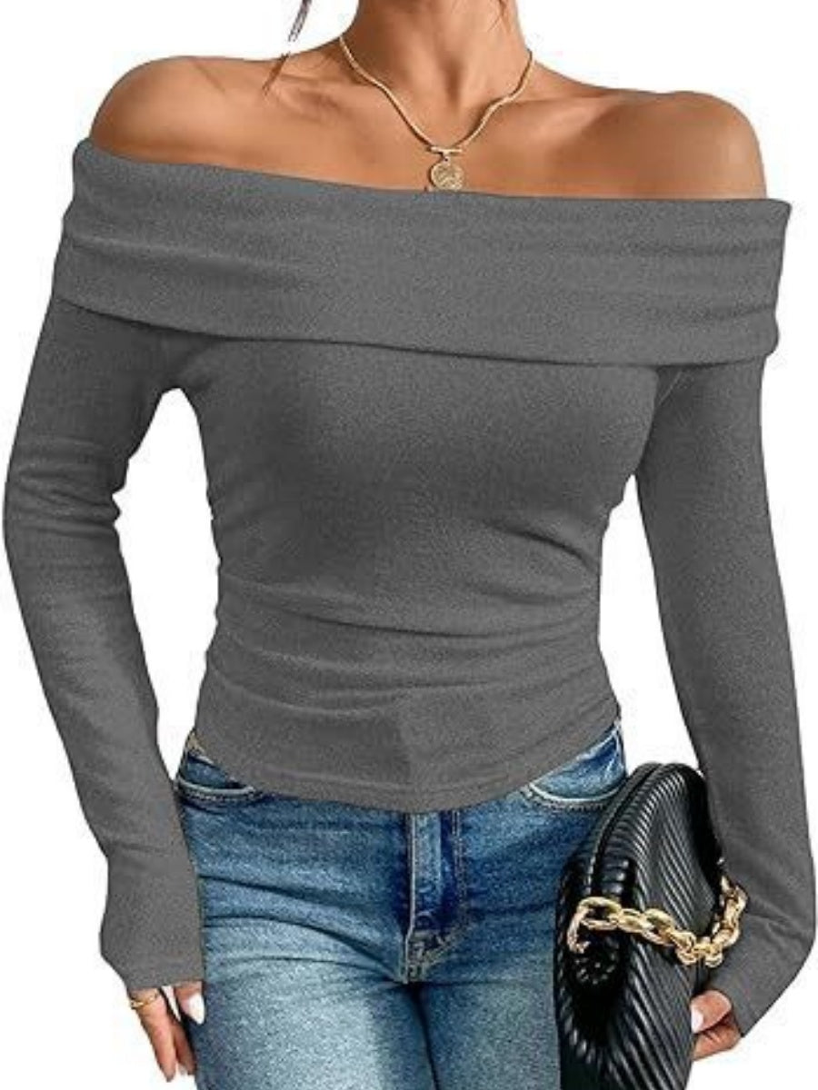 T-shirts basiques à manches longues, coupe ajustée et épaules dénudées