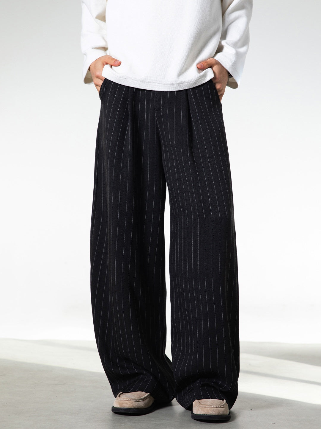 【EXPÉDITION NORMALE】Pantalon habillé à rayures style vieille fortune, coupe ample
