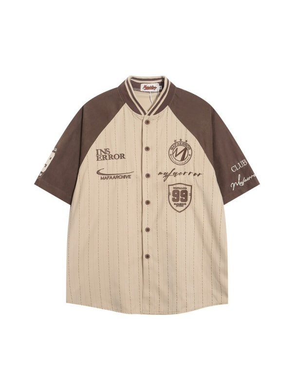 Retro Patchwork Color-blocked Vertical Stripe Shirts