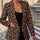 Distressed Cardigan Style Leopard Print Slim Fit Workplace Casual Suit Jacket