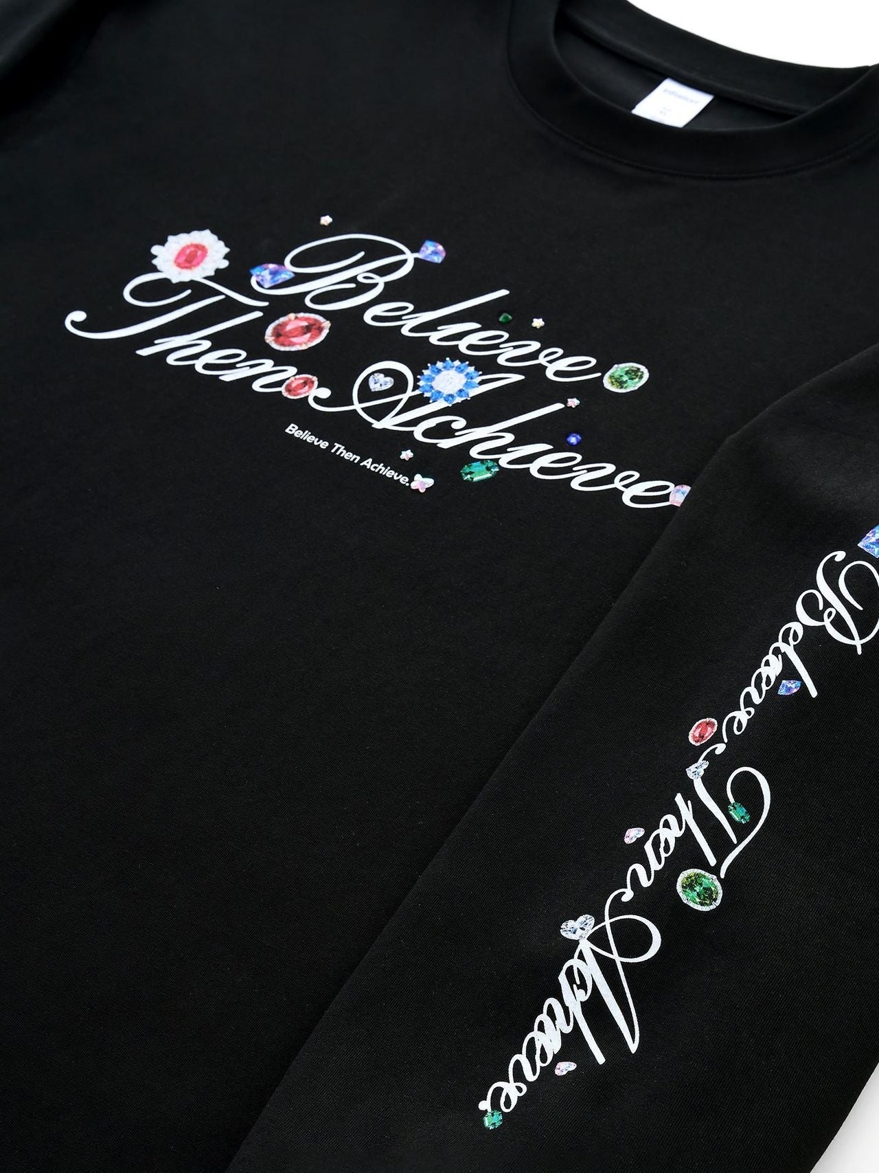Crystal Lucky Alphabet Gem Print Long-sleeved T-shirt