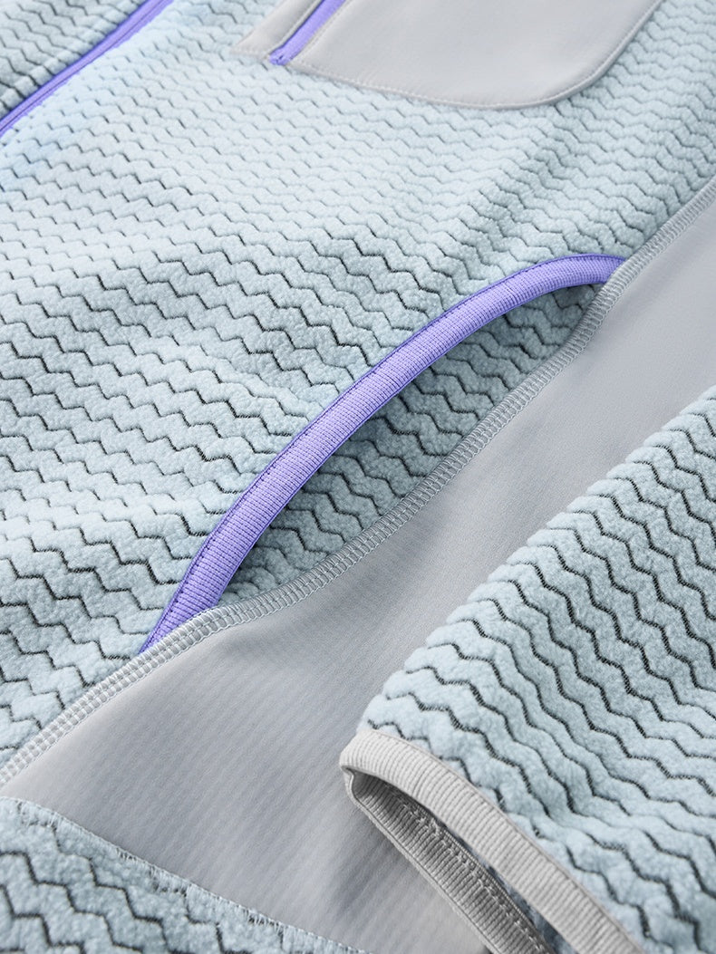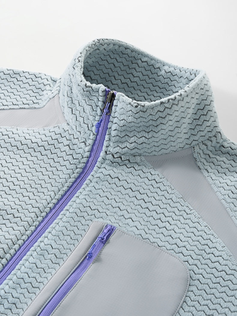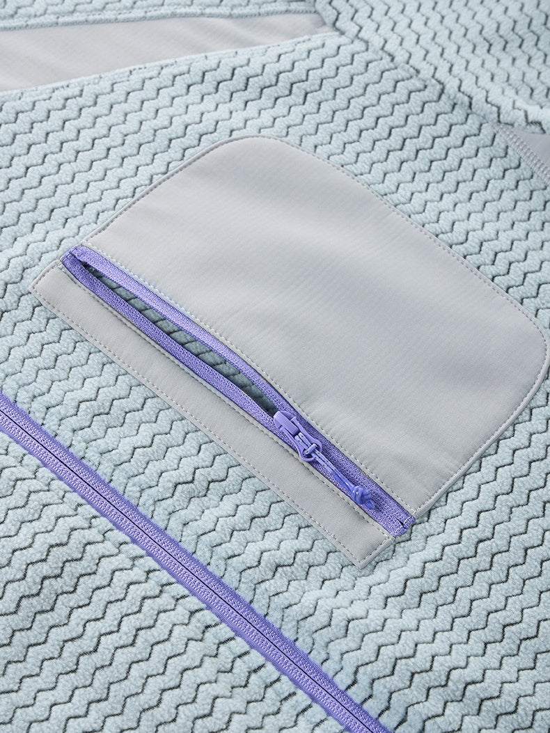 Wave Pattern Contrasting Colors Zipper Light Outdoor Plush Sweatshirt Sports Jacket