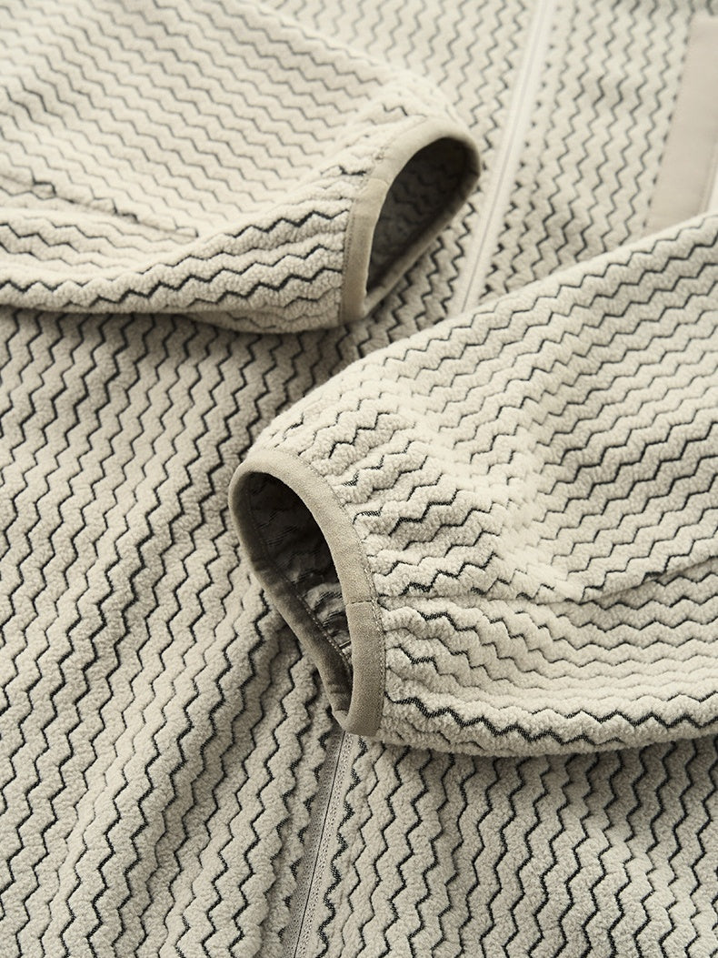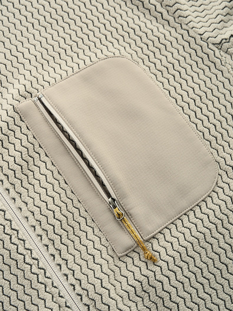 Bata Wave Pattern Stand Collar Outdoor Windproof Zipper Jacket