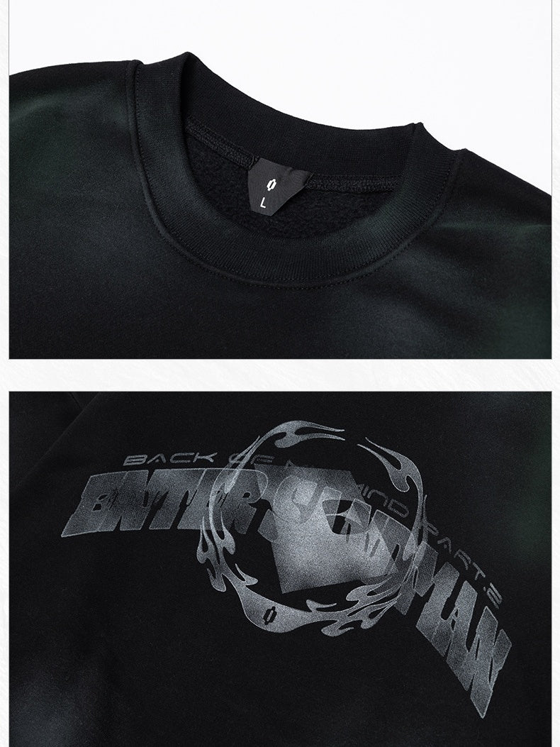 Plush Thickening Two-color Inkjet Printing Hem Drawstring Crew Neck Sweatshirt