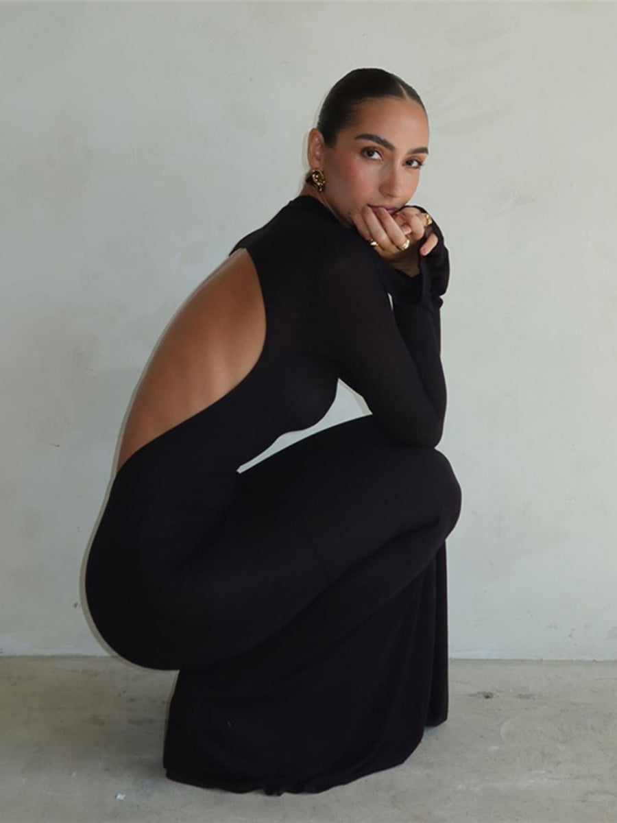 Liber Winter Women's Backless Solid Color Maxi Dresses