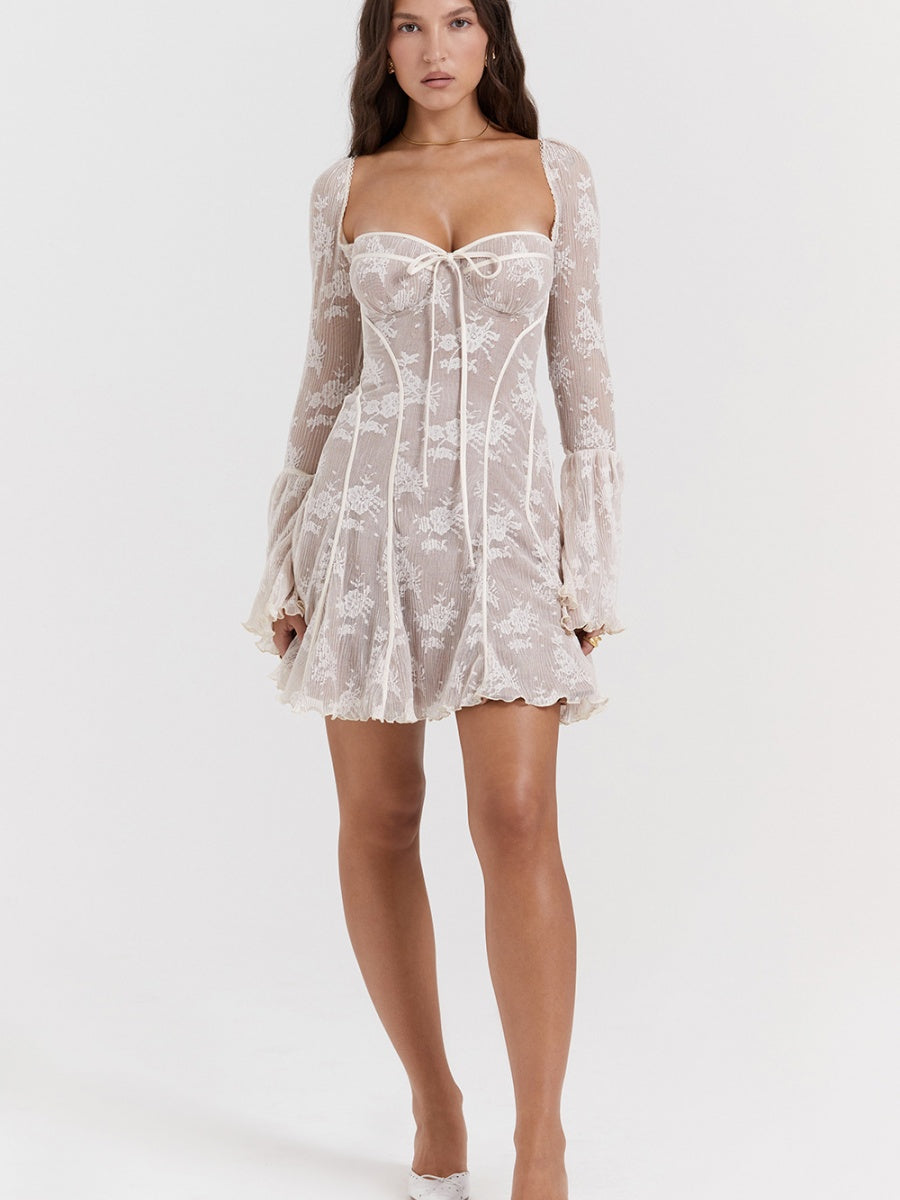 Tube Top Backless Flared Sleeves Lace Mini&Short Dresses