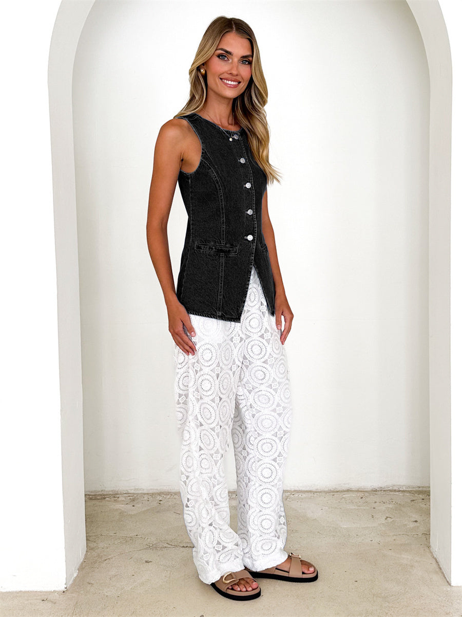 Liber Summer Women's Buttons Cowboy Vests