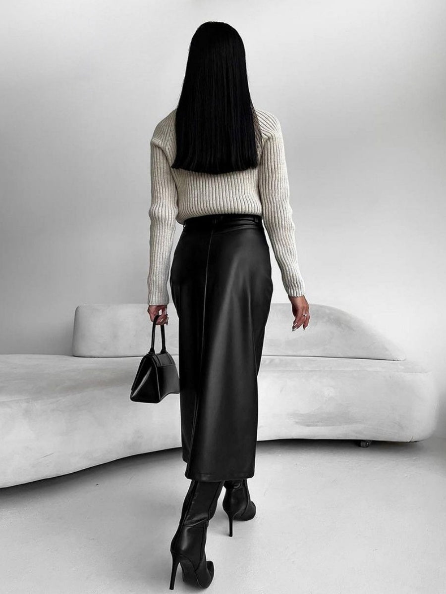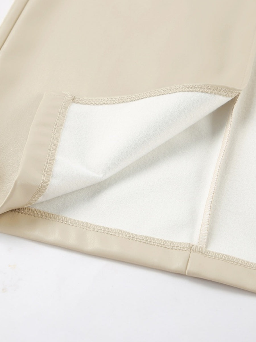 Bodycon Style Matte Fleece Lining PU Leather Slit Sexy Workplace Casual Skirt