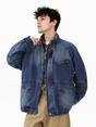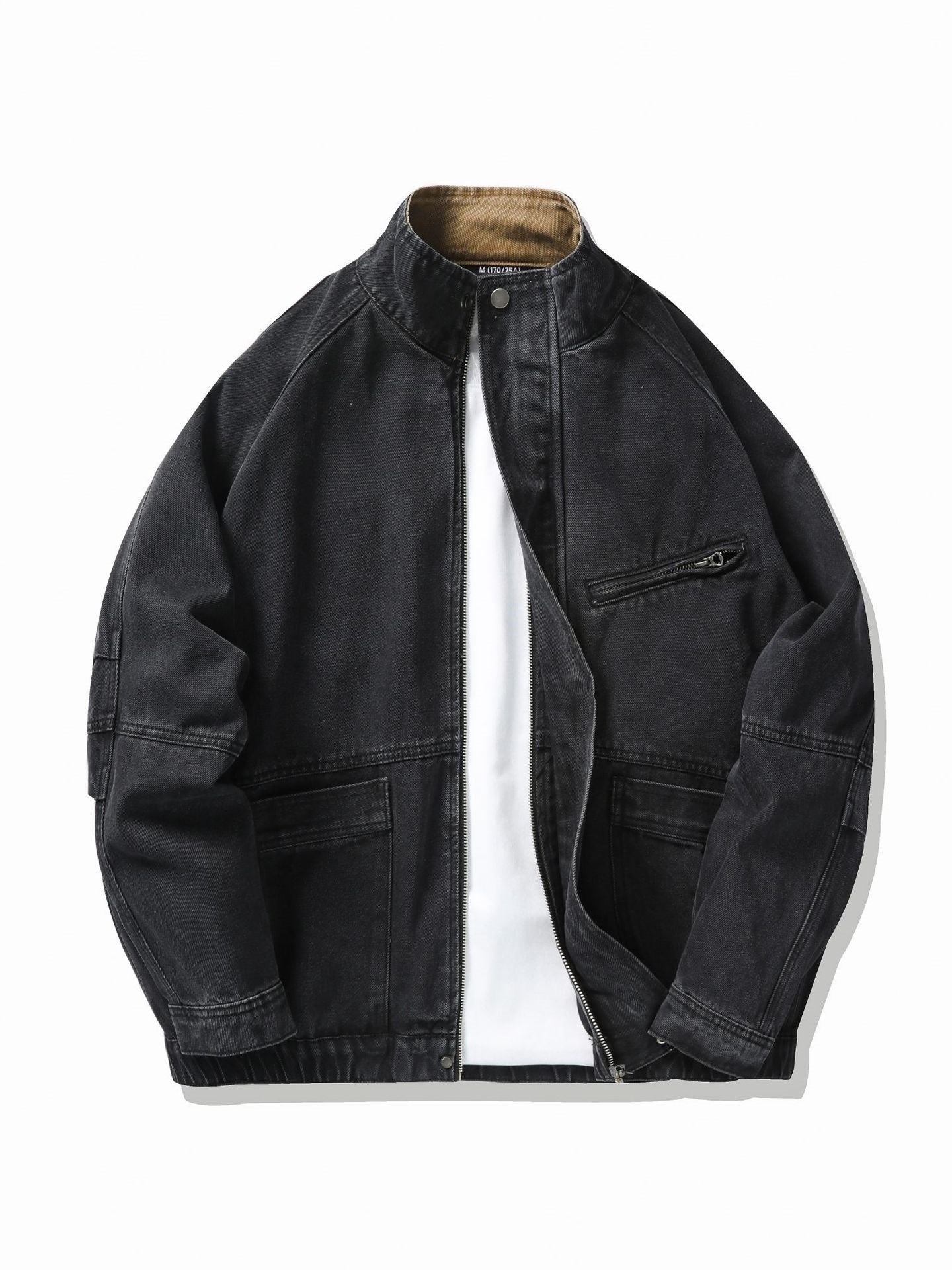Retro Washing Stand Collar Zipper Workwear Denim Jacket