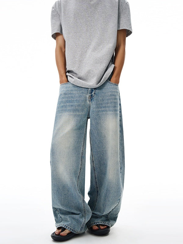 Classic Washing Buttons Baggy Wide-leg Jeans