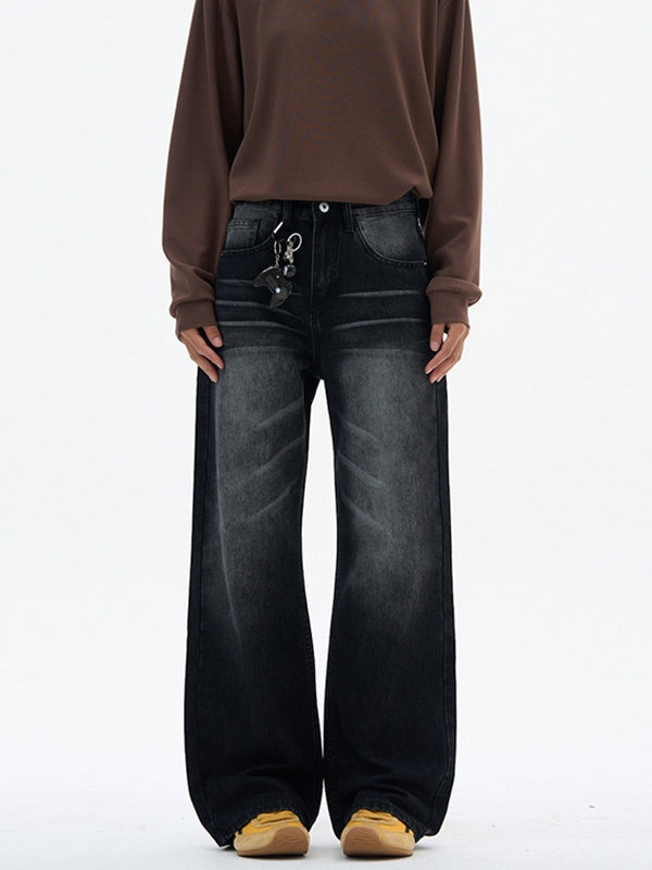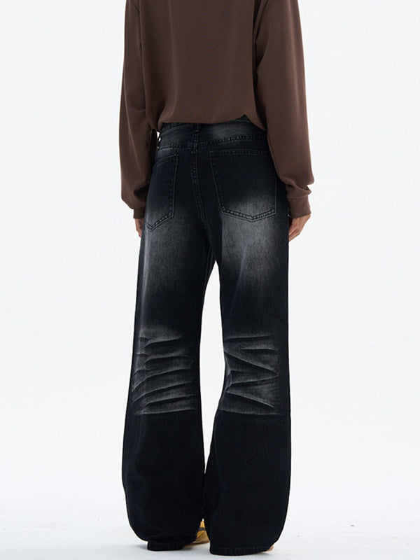 Cleanfit Washing Stereo Cat Whiskers Loose Straight Jeans