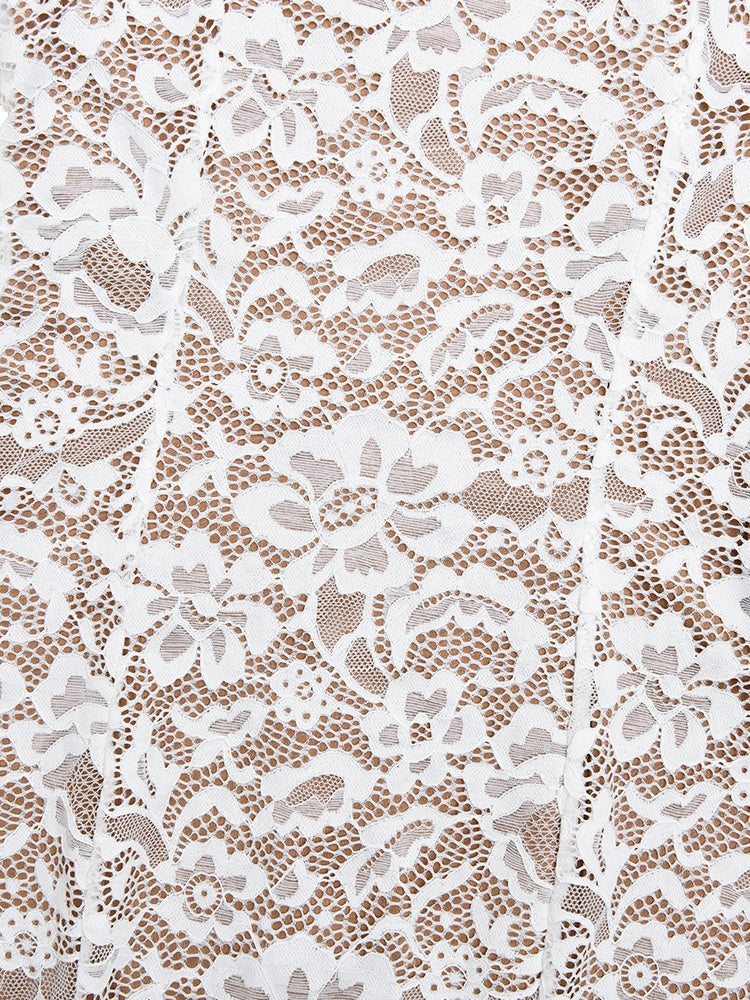 White Lace Long Sleeve Crew Neck Fishtail Slim Fit Dress