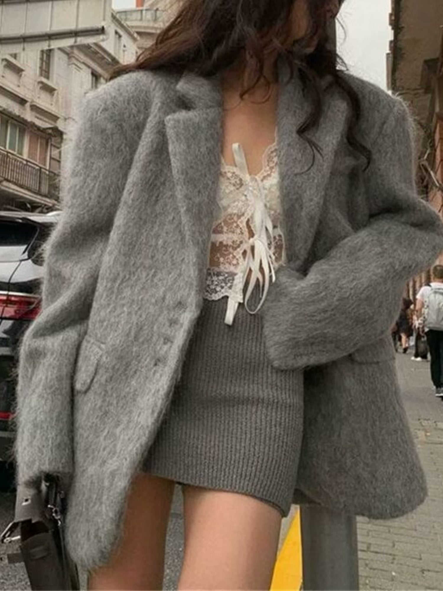 Long Hair Lapel Single-breasted Long Sleeves Blazers