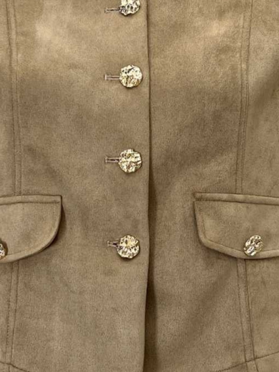 Liber Autumn women's round neck short pocket suede collage, Patchwork jacket