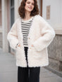 Liber Autumn women's white short fur pocket button Patchwork cotton jacket