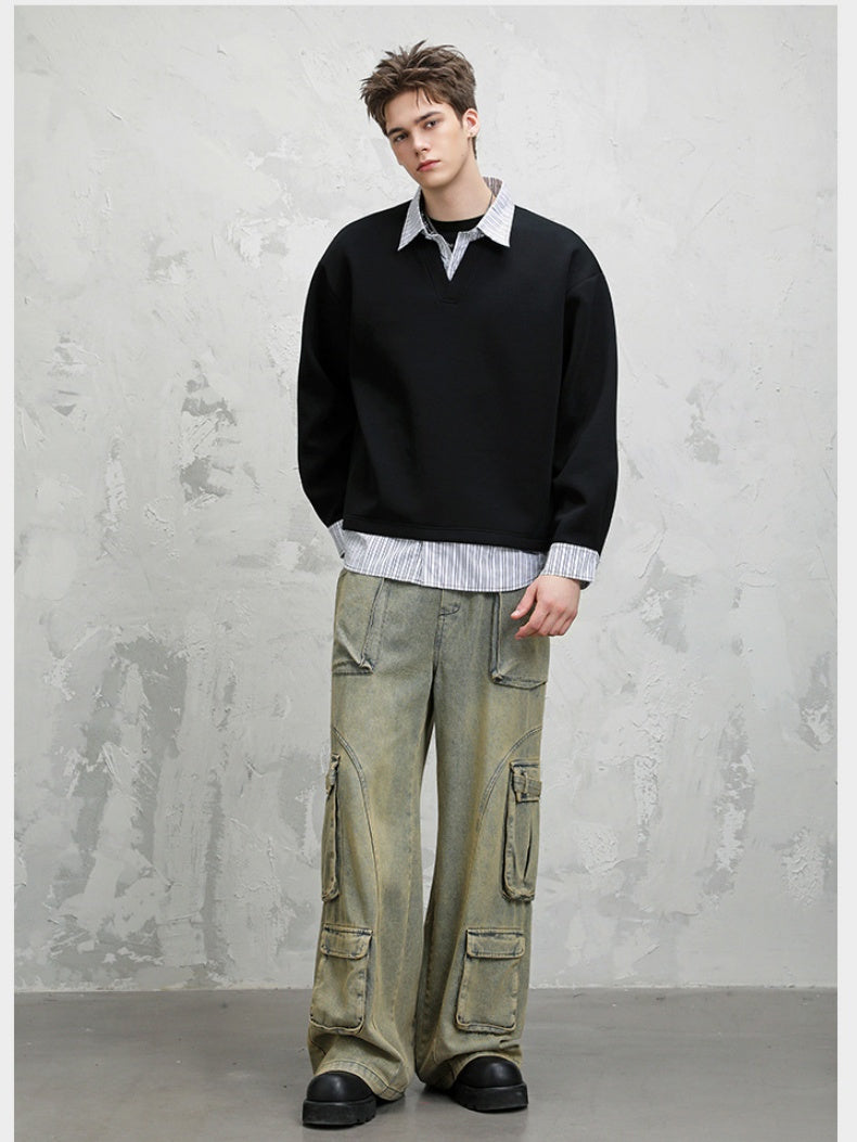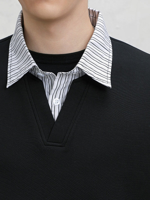 Design Fake Two Pieces Stripes Sports Casual Sweatshirts