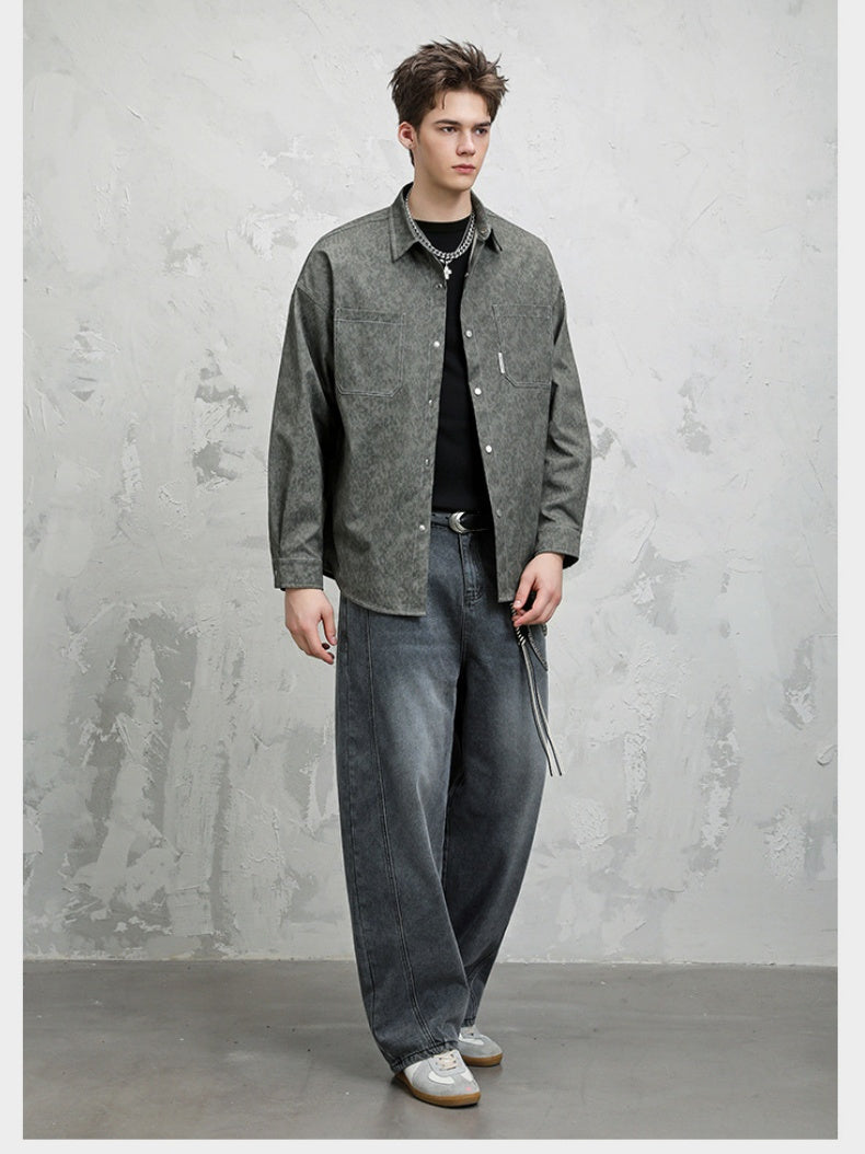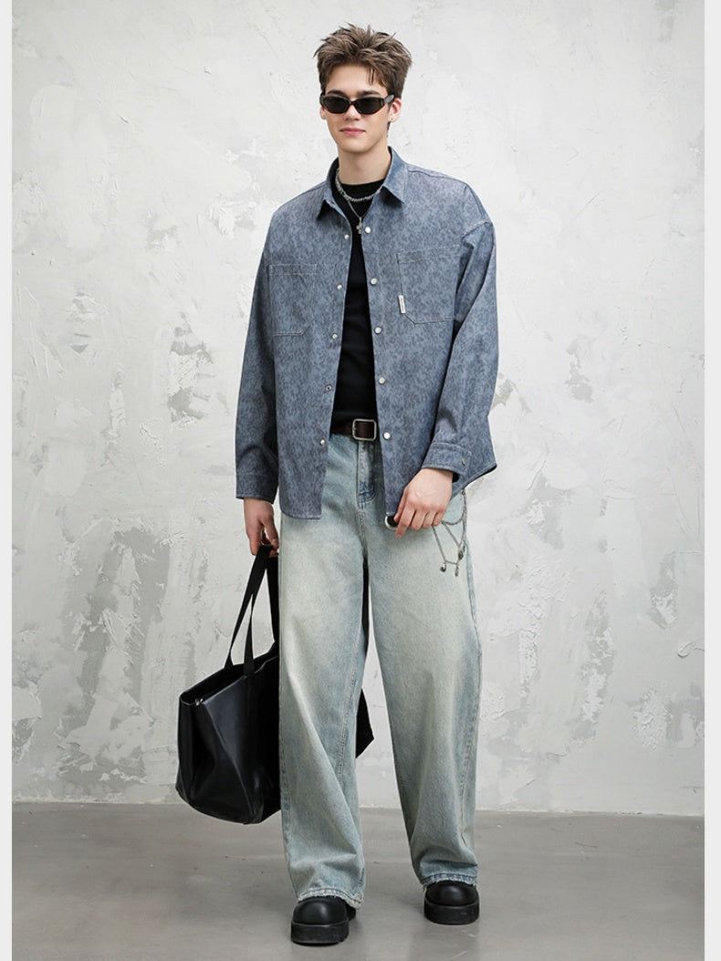 Vintage Distressed Tie-dye Design Loose Long-sleeved Shirt