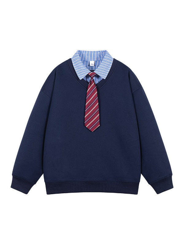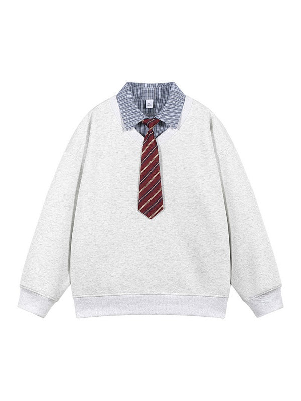 Fake Two Pieces Plaid Tie Contrasting Colors Splicing Polo