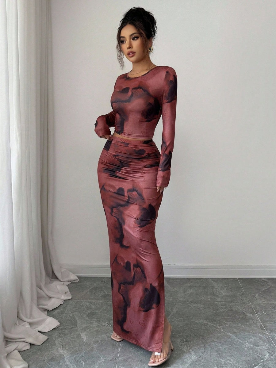 Tie-dye Patterns Long Sleeve T-shirts Tight Fit Skirts Two Sets