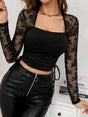 Liber Autumn Women's Lace Solid Color Mesh&Sheer Tops