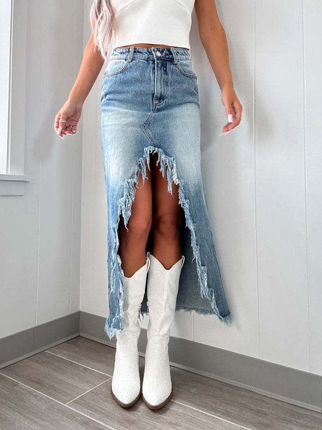 Liber Spring Women's Old, Irregular, Tassel Solid Color Skirts