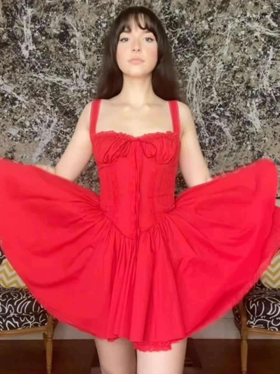 Trim Lace Bandage Big Swing Dating Mini&Short Dresses