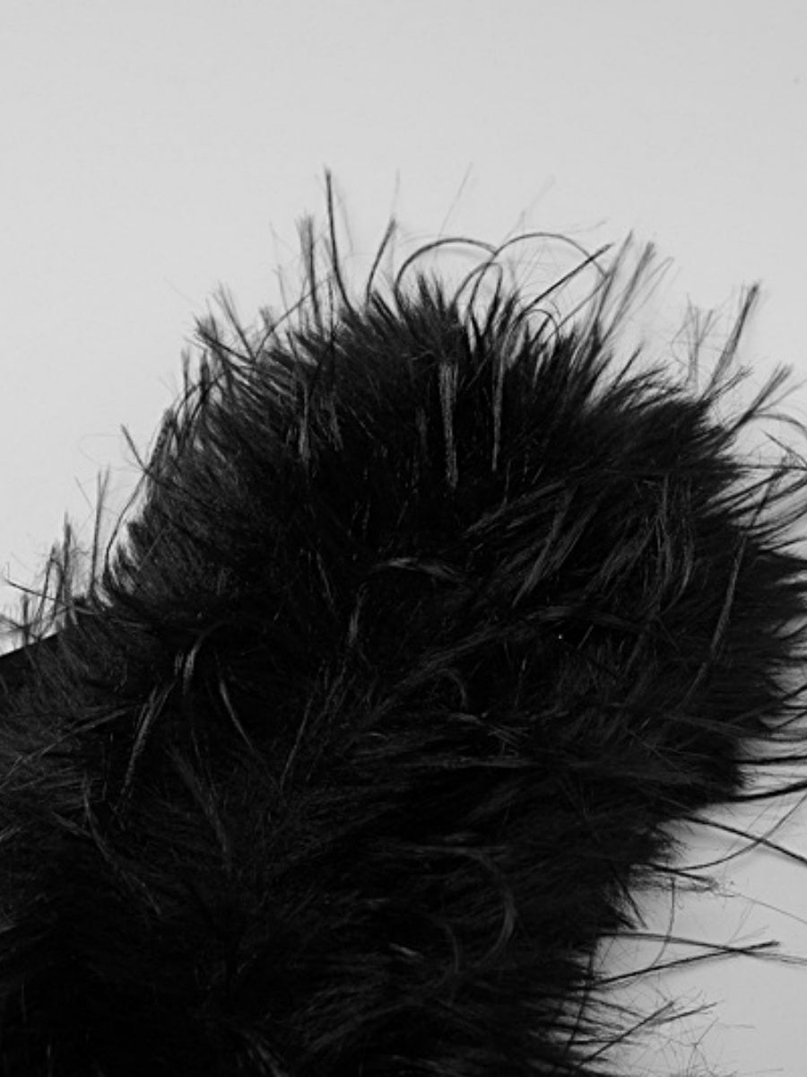 Black Sloping Shoulders Spliced Feathers Slim Fit Long Evening Dress