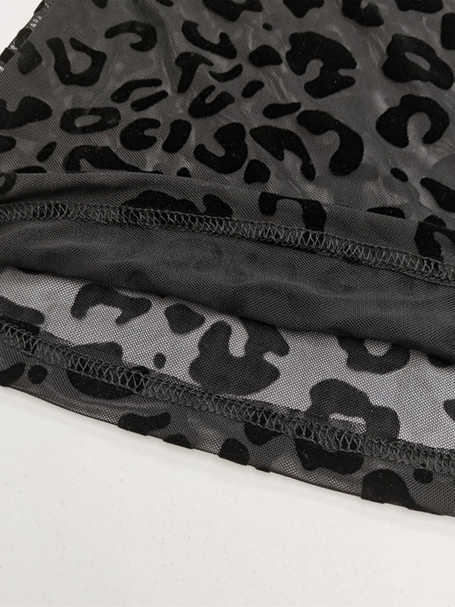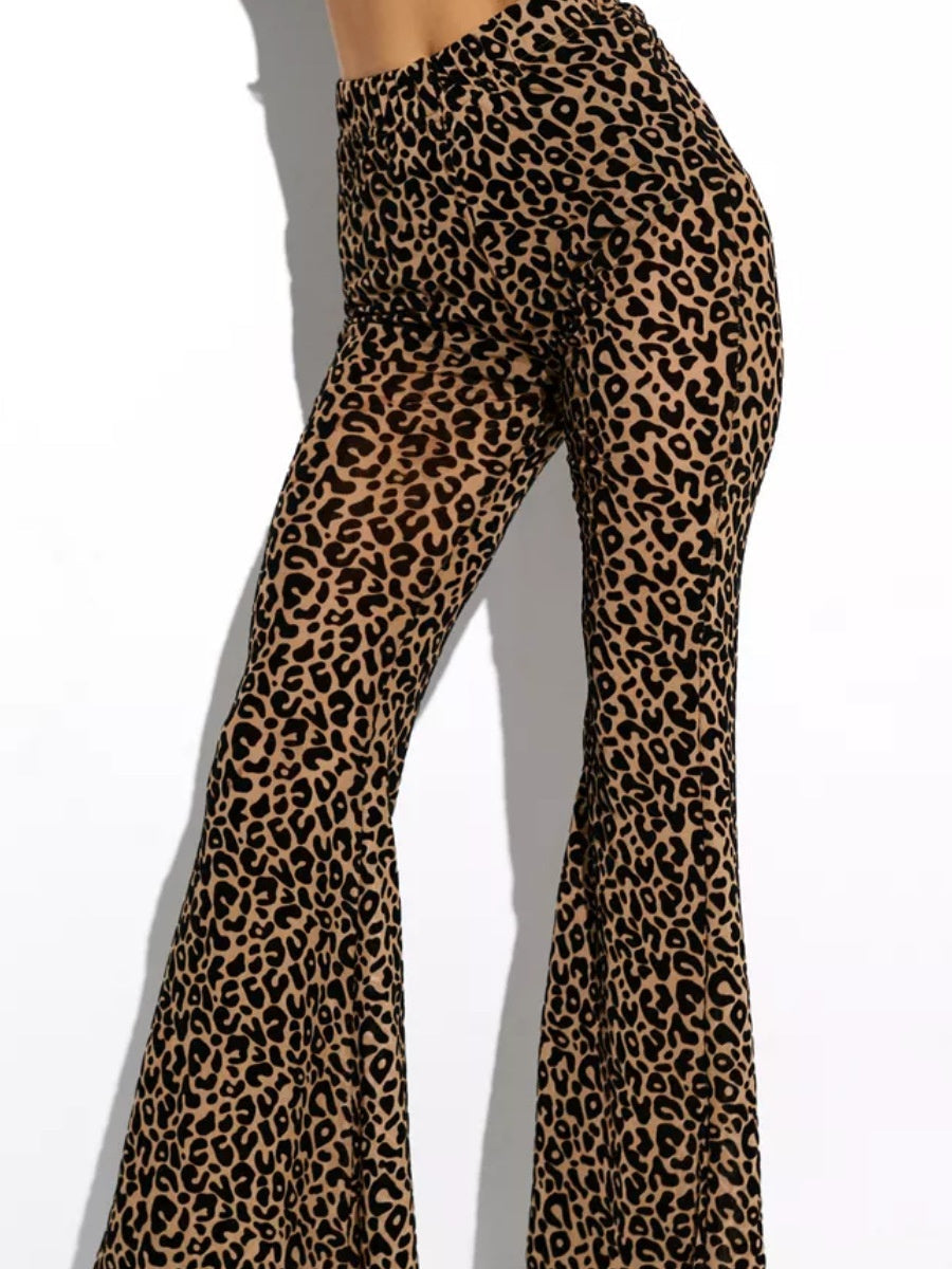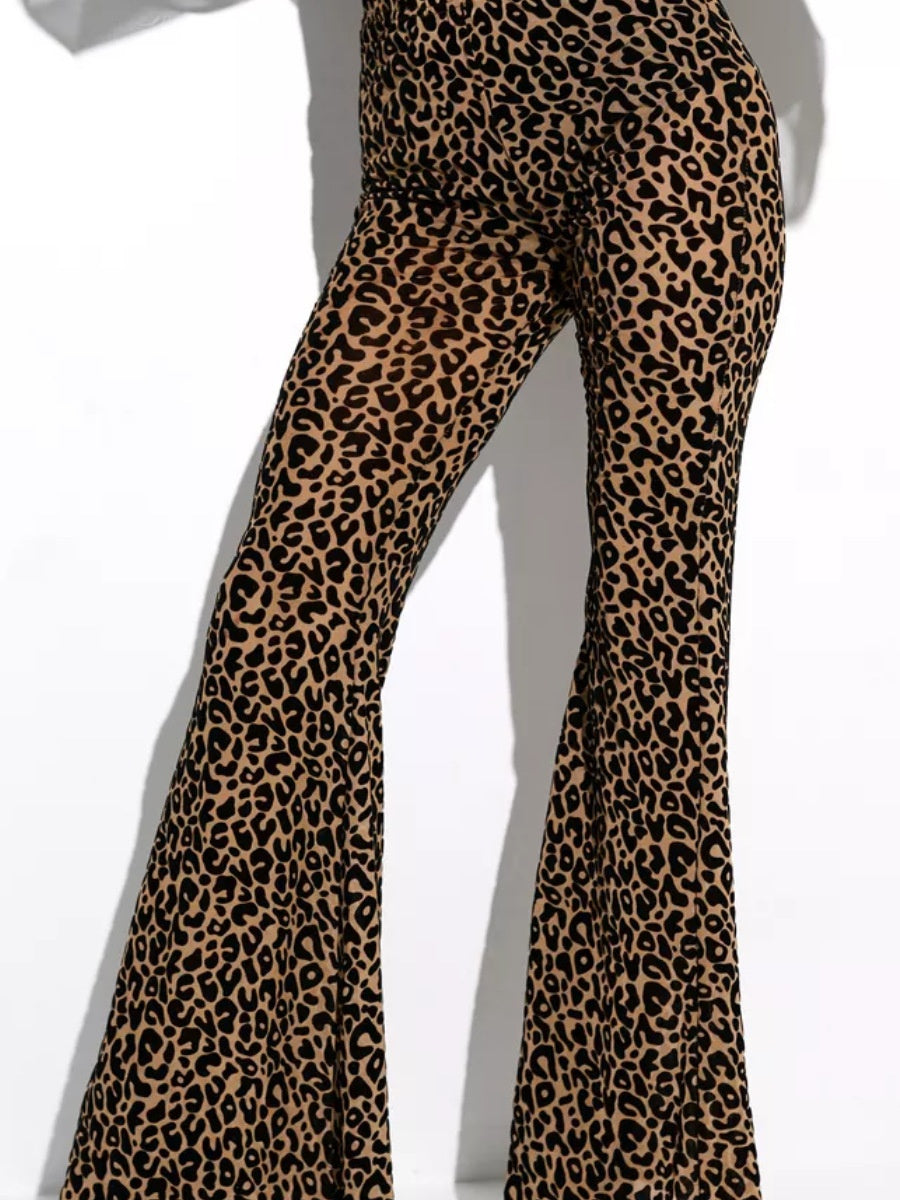 【SHIP AS USUAL】 Mesh Flocking Perspective Leopard Print Pants
