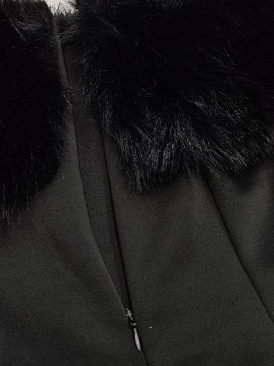 Off-Shoulder Bodycon Mini Dress with Faux Fur Trim