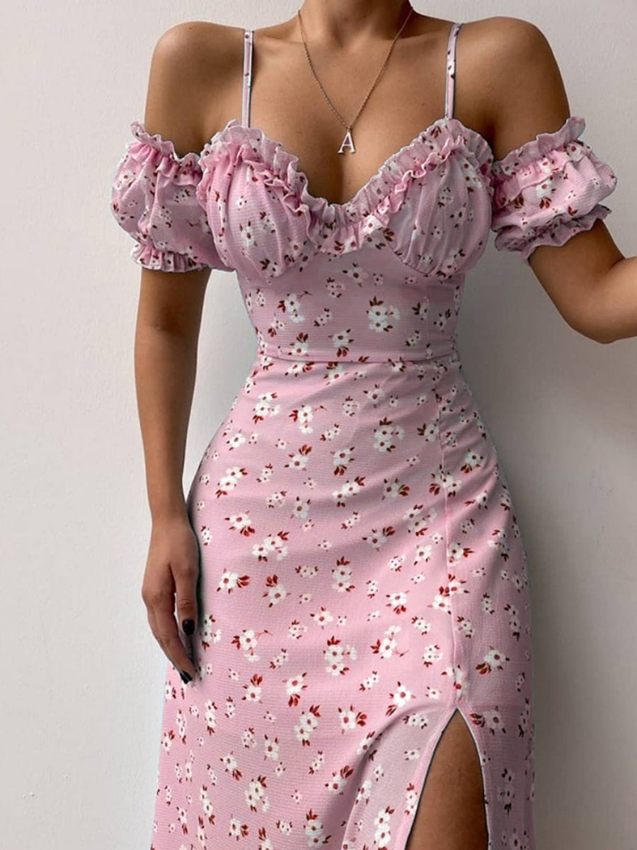Floral Off-shoulder Slit Maxi Dresses