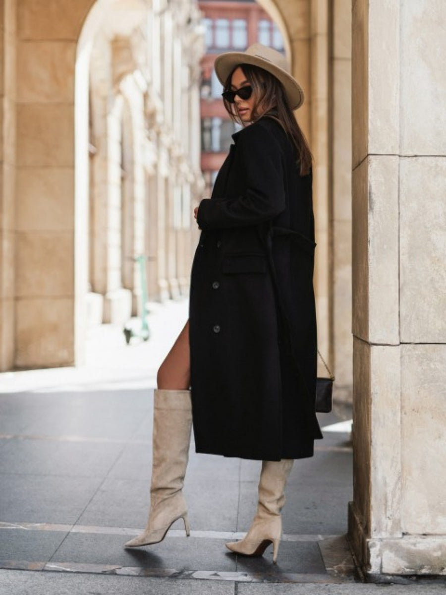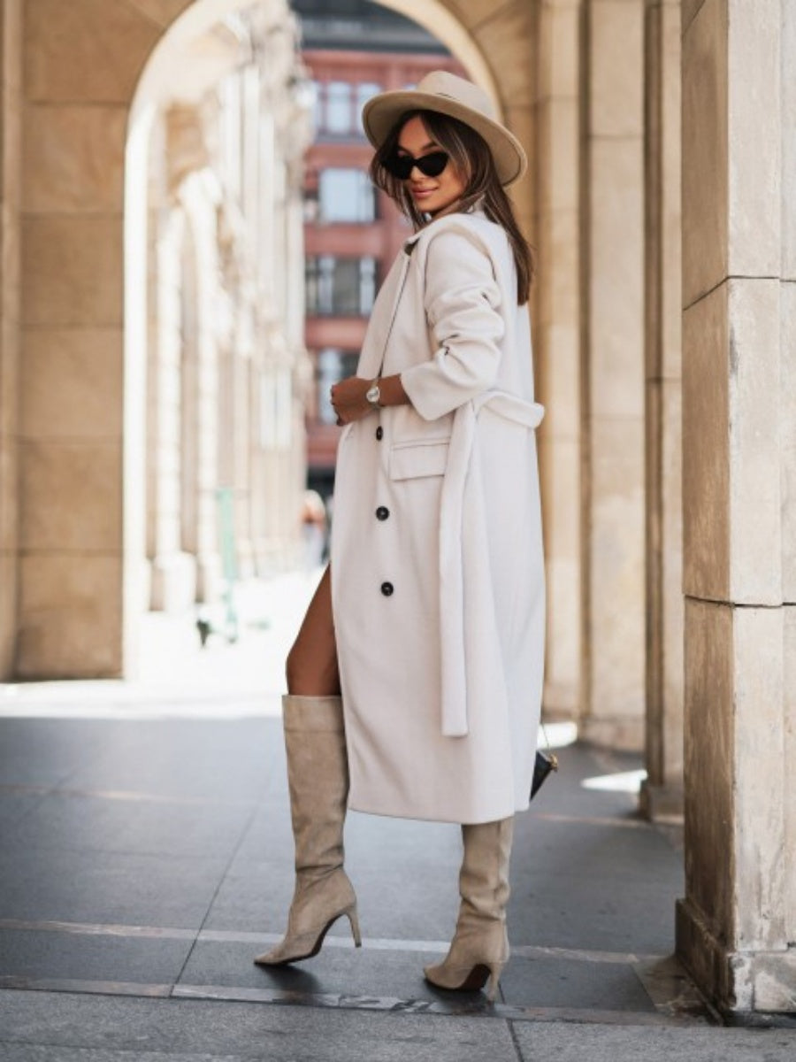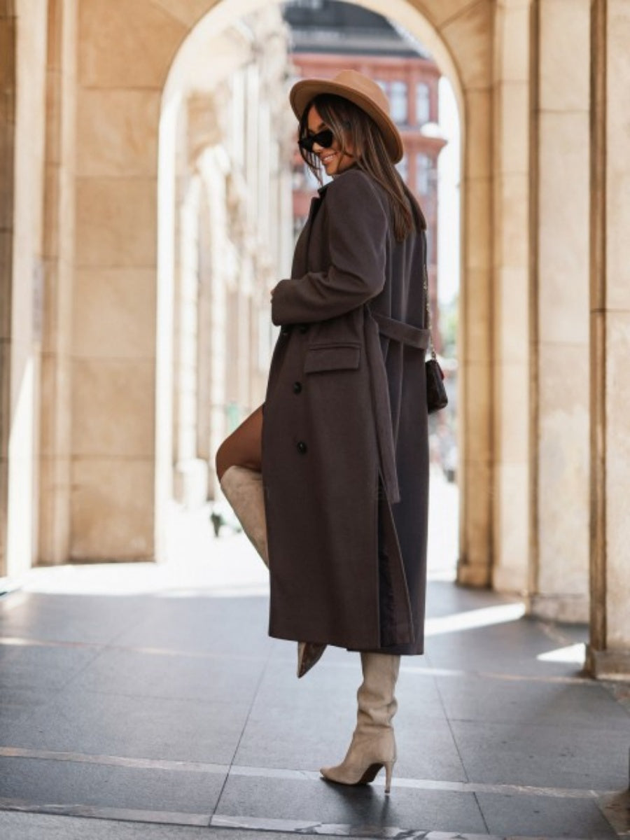 Simple Long-sleeved Suit Collar Tie Wool Solid Color Coats