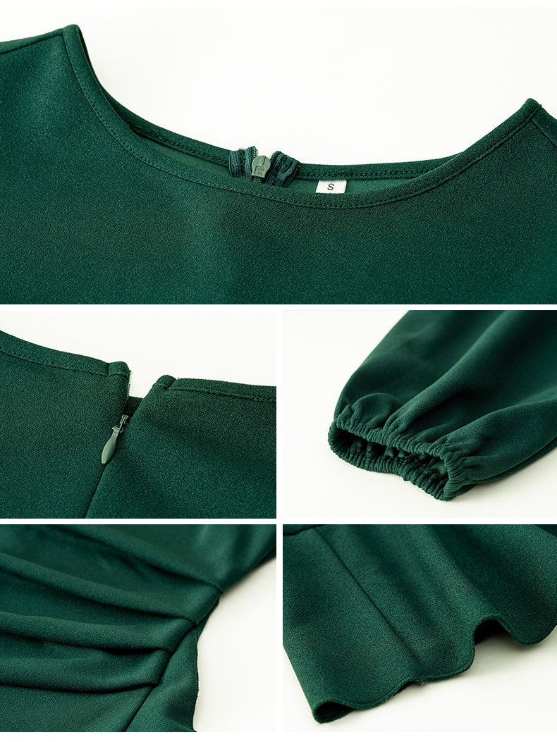Christmas Puff Sleeve Ruffle Pure Color Mini&Short Dresses