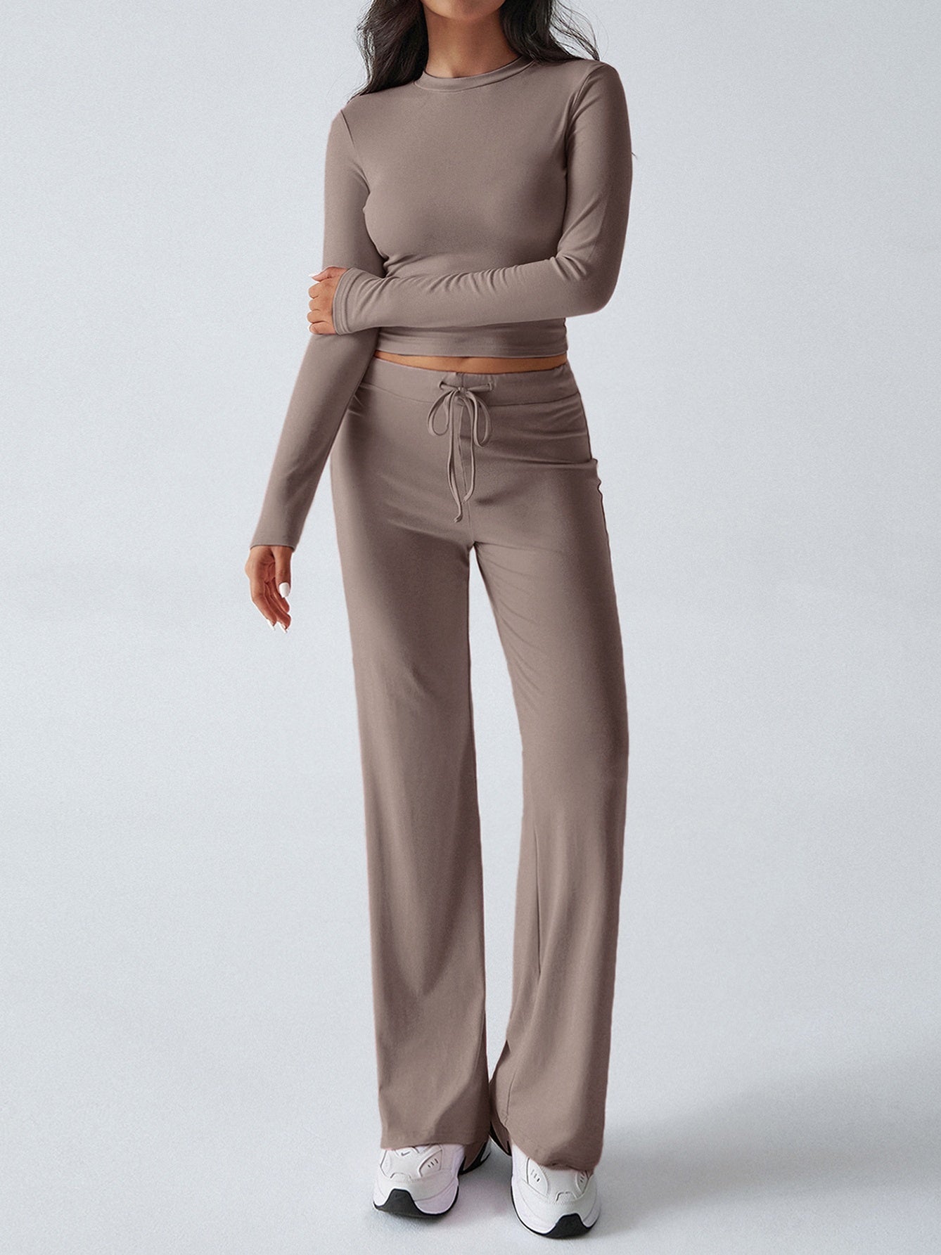 Casual Sporty Slim-fit Long-sleeved Top And Drawstring Trousers Two-piece Set