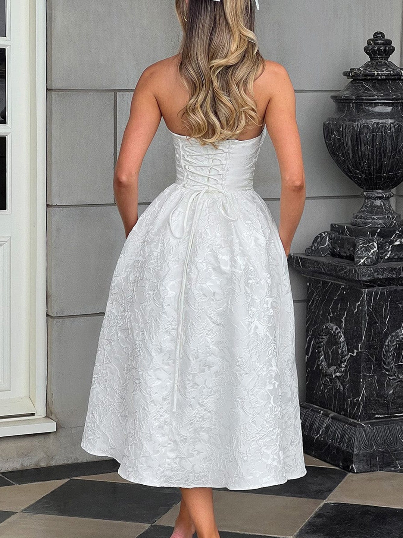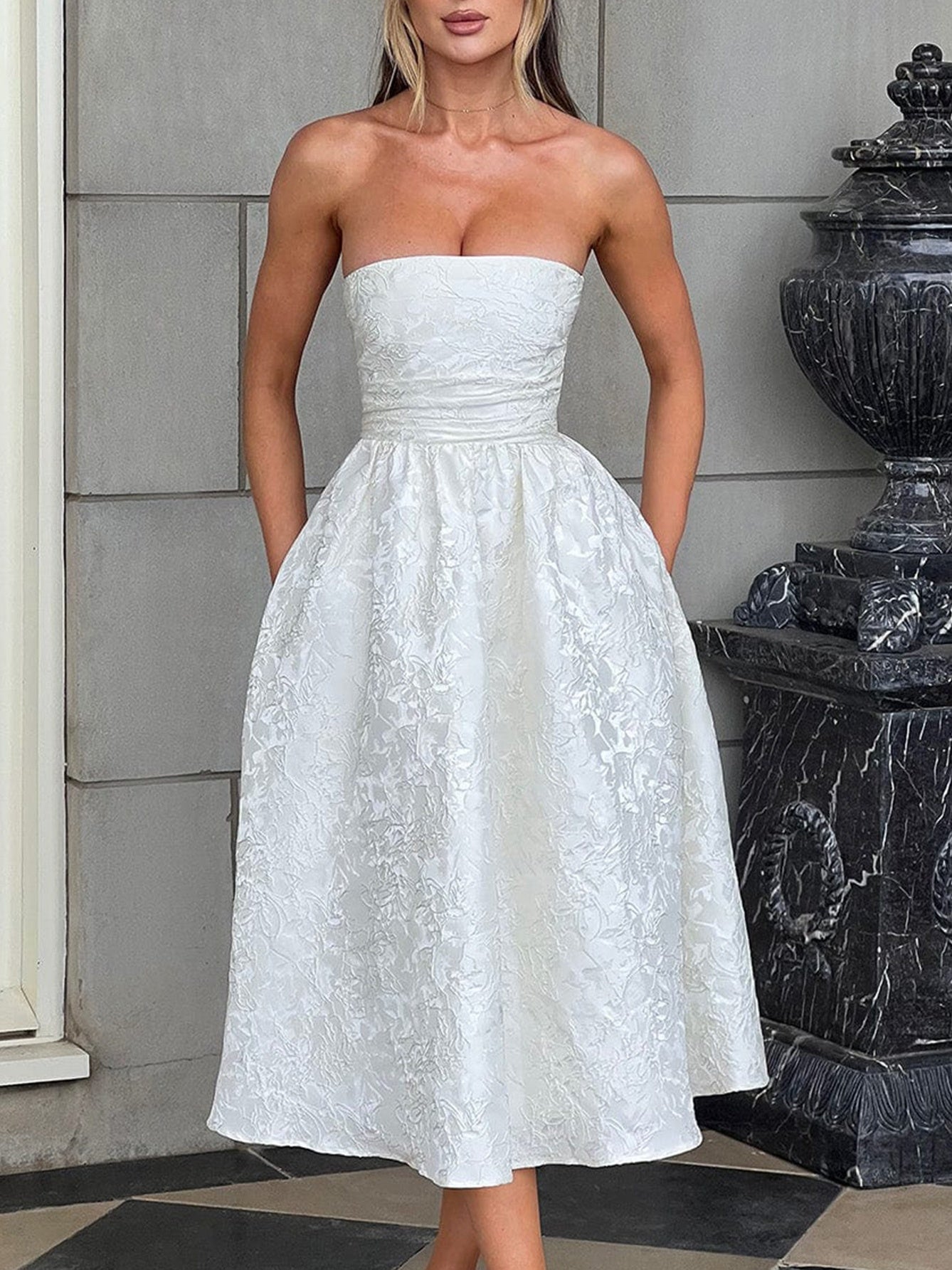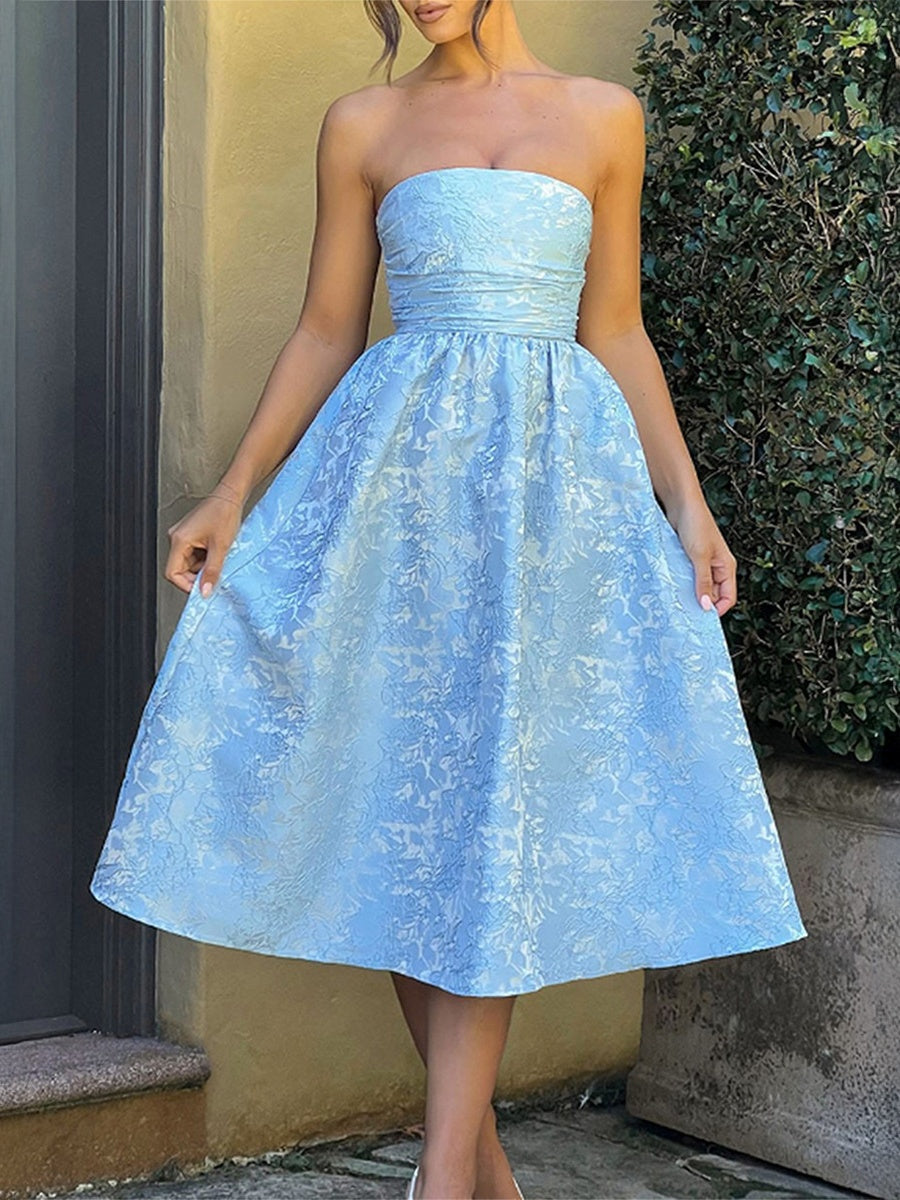 Pleating Jacquard Of Plants And Flowers Tube Top Maxi Dresses