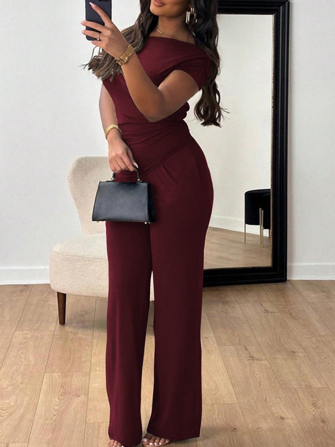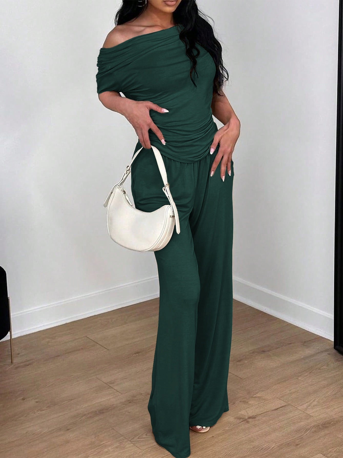 Off-shoulder Short-sleeved Trousers Two-piece Set