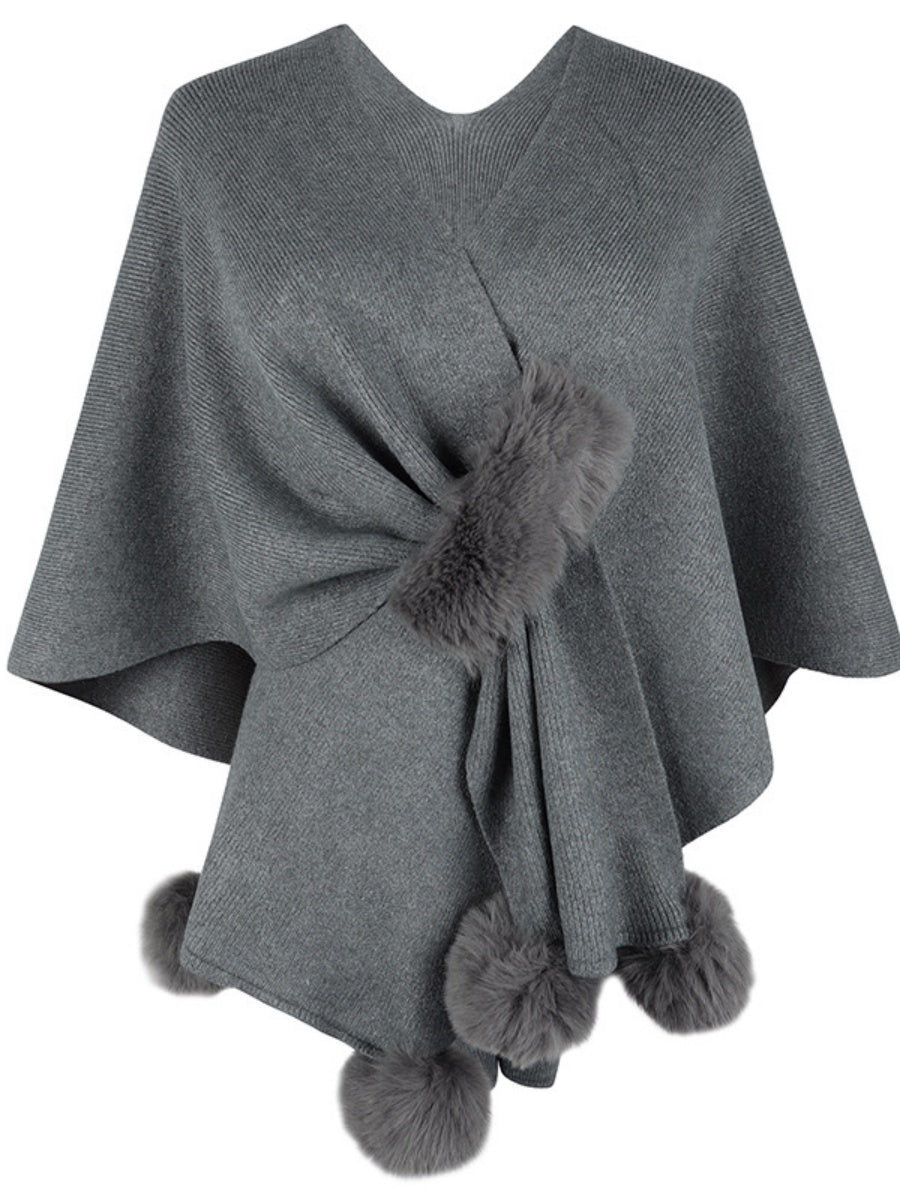 Solid Color Fluff Ball Cloak Shawl Cardigans