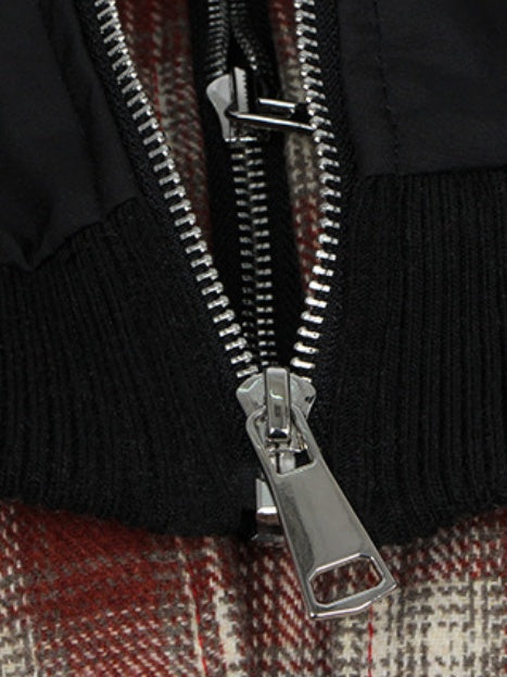 Fake Two Pieces Embroidery Plaid Splicing Hooded Jacket