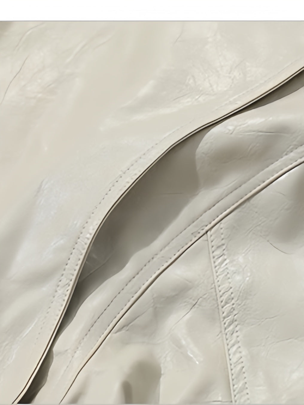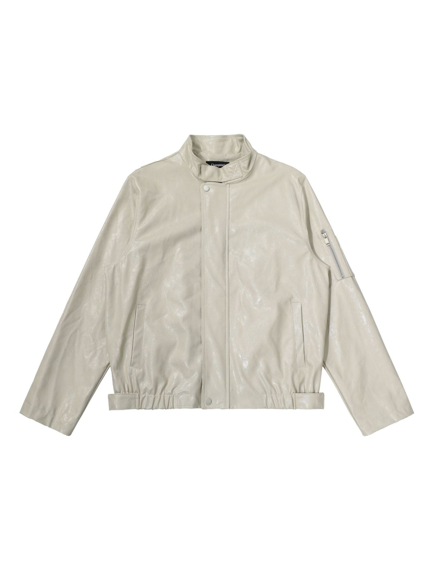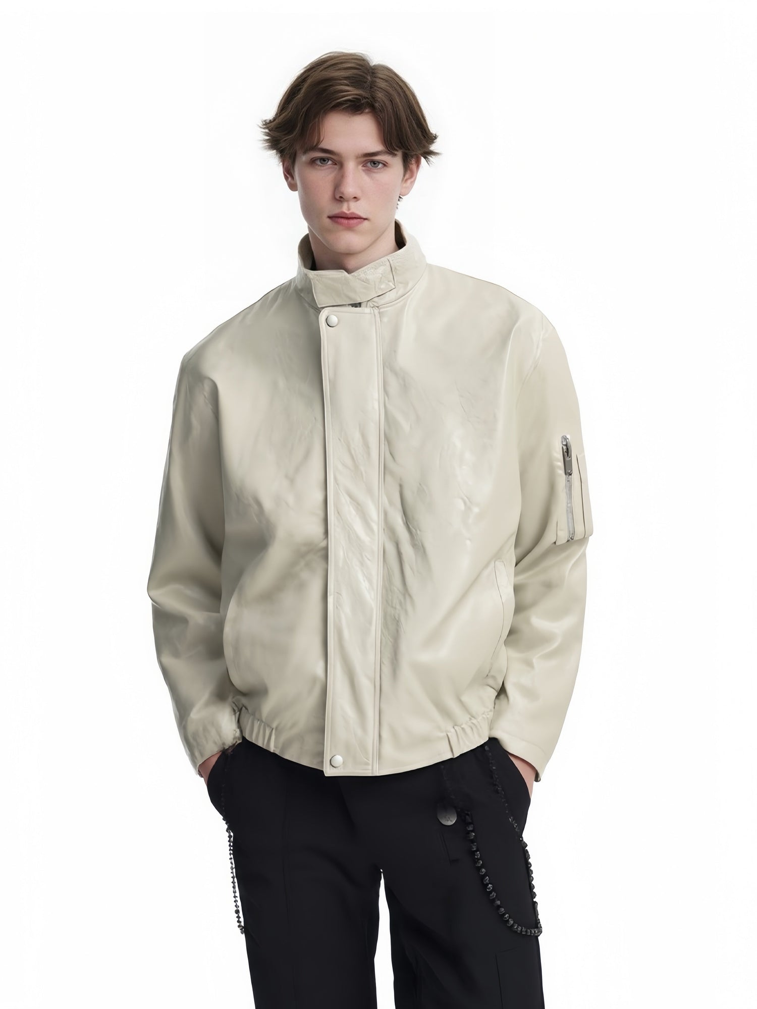 Retro Old Money Style Brown Cleanfit Silhouette Stand Collar Leather Jacket