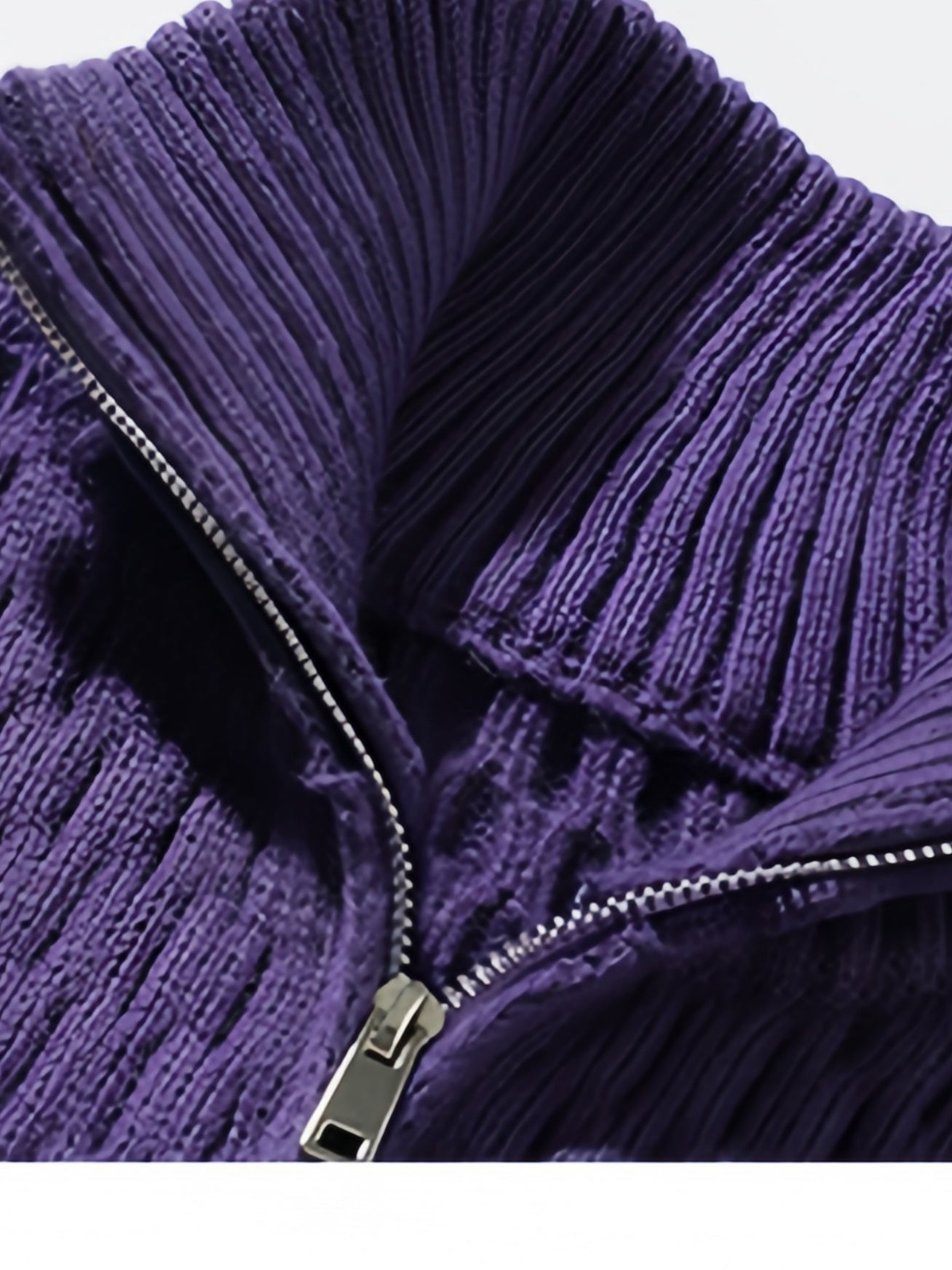 Coarse-pitted Fried Dough Twist Half Zipper Loose Hood Old Money Style Sweater