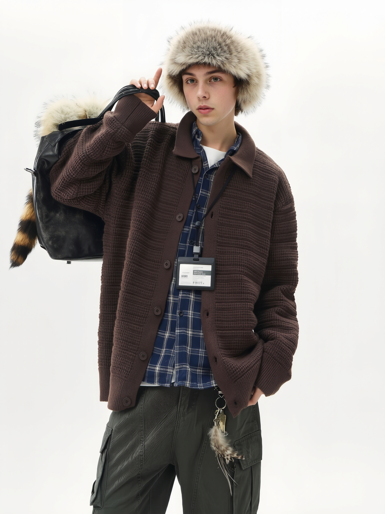 Old Money Style Cleanfit Retro Cardigan Sweater