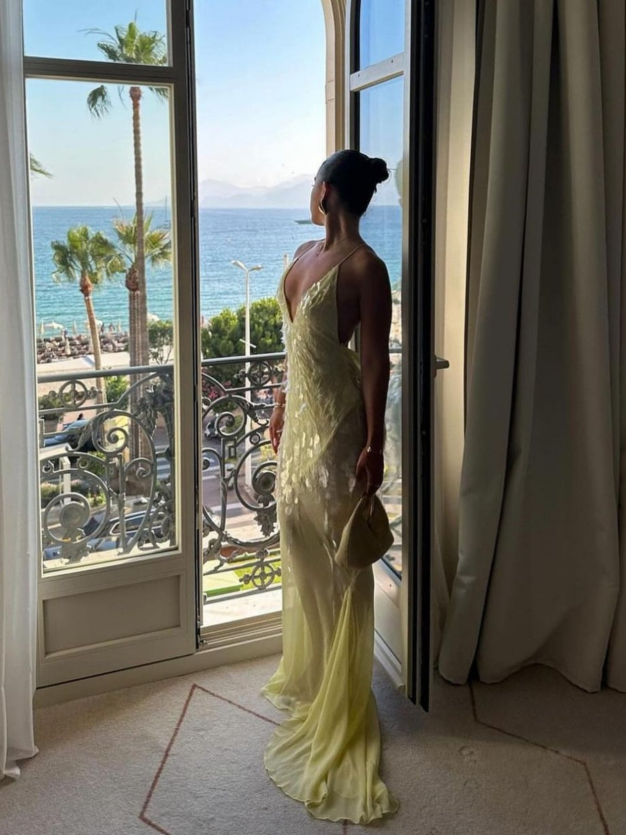 Liber Winter Women's Backless Splicing Deep V-neck Maxi Dresses