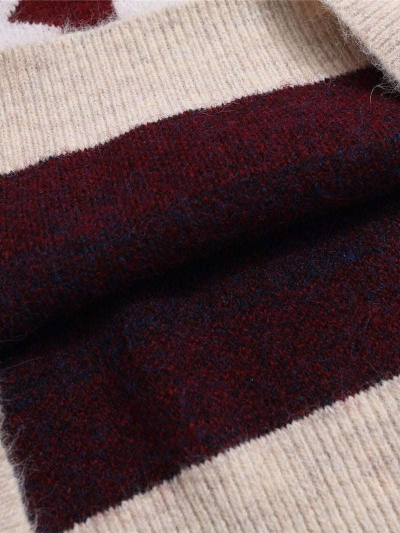 Christmas Retro Contrasting Colors Stripes Star Numbers Jacquard Lapel Sweater