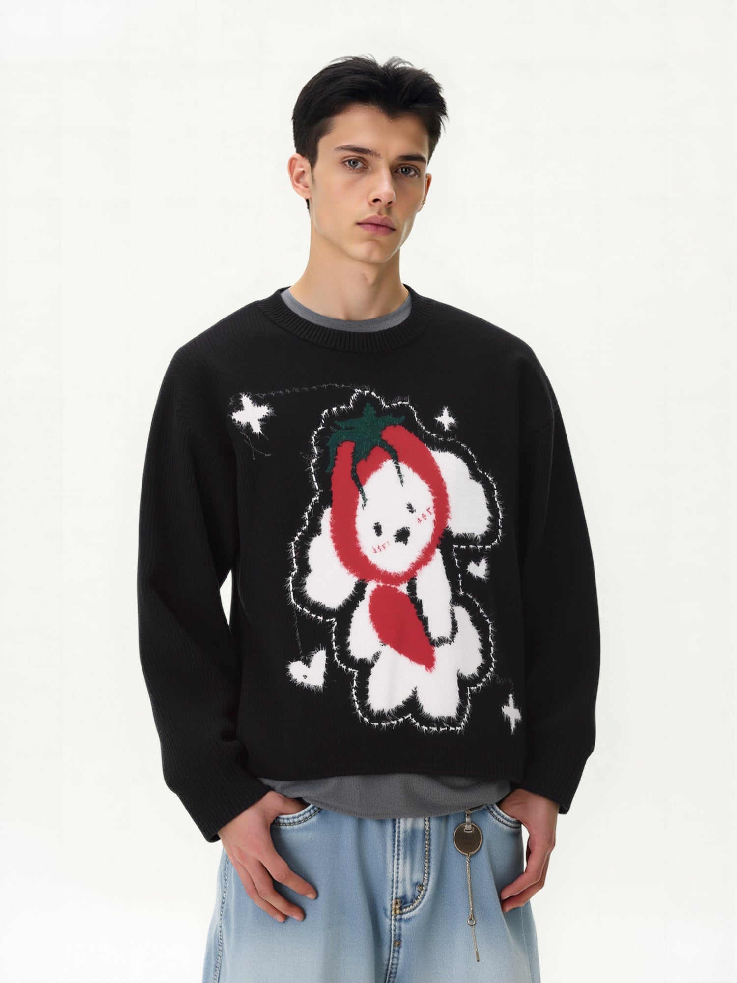 Retro Cute Tomato Puppy Jacquard Pullover Sweater