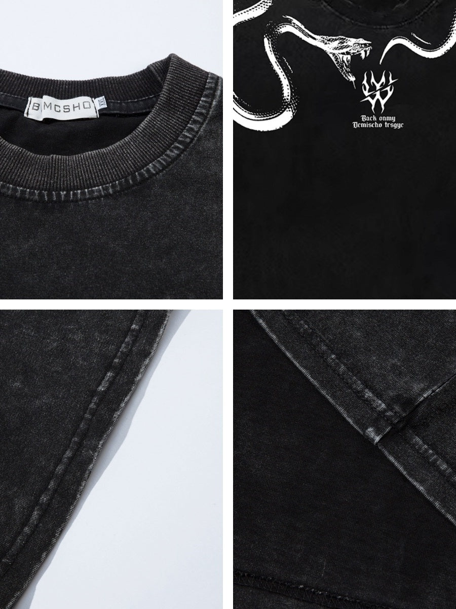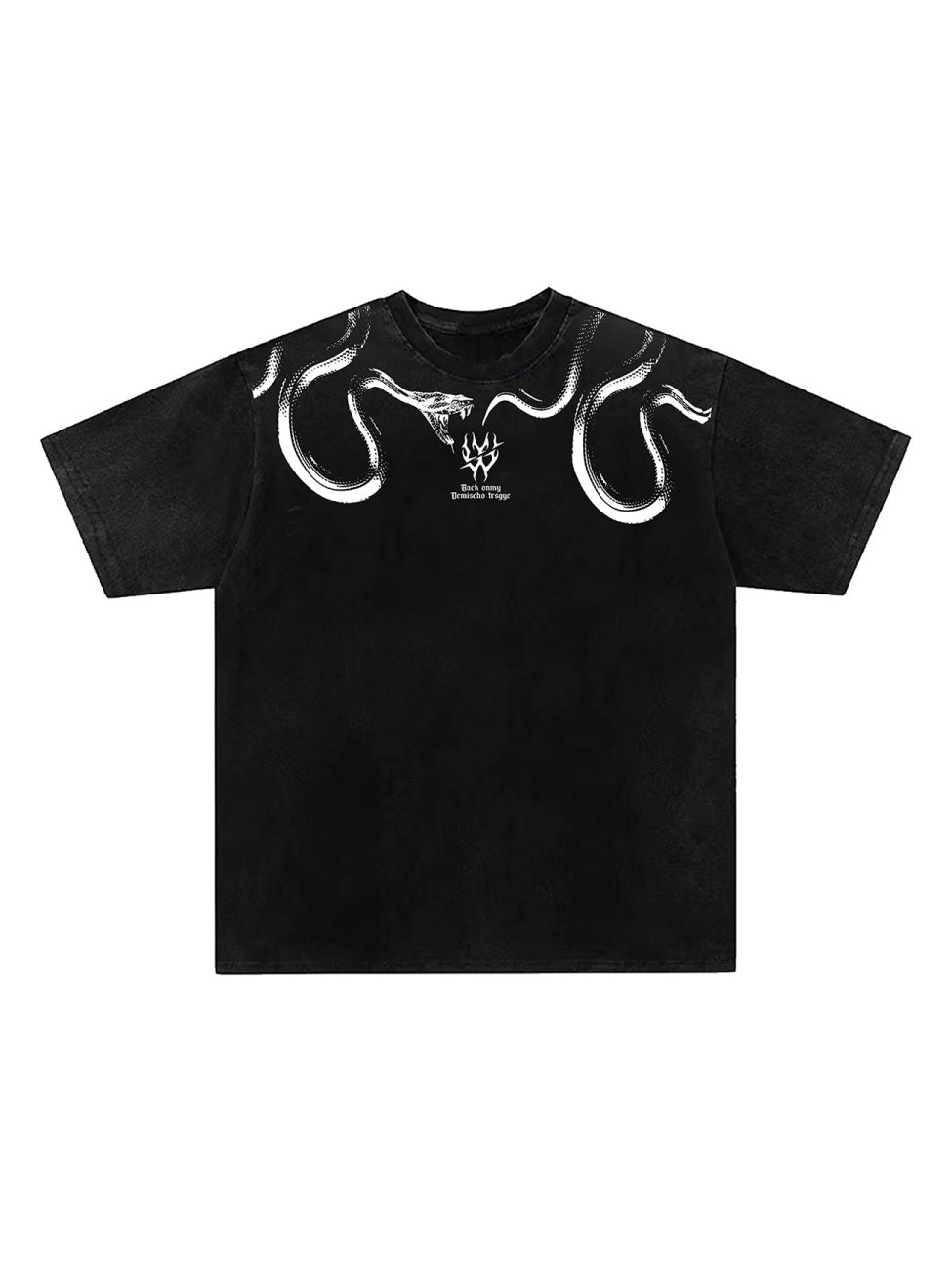 Spirit Snake Printed Loose-fit Washed T-shirts