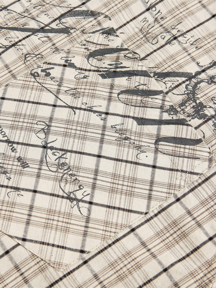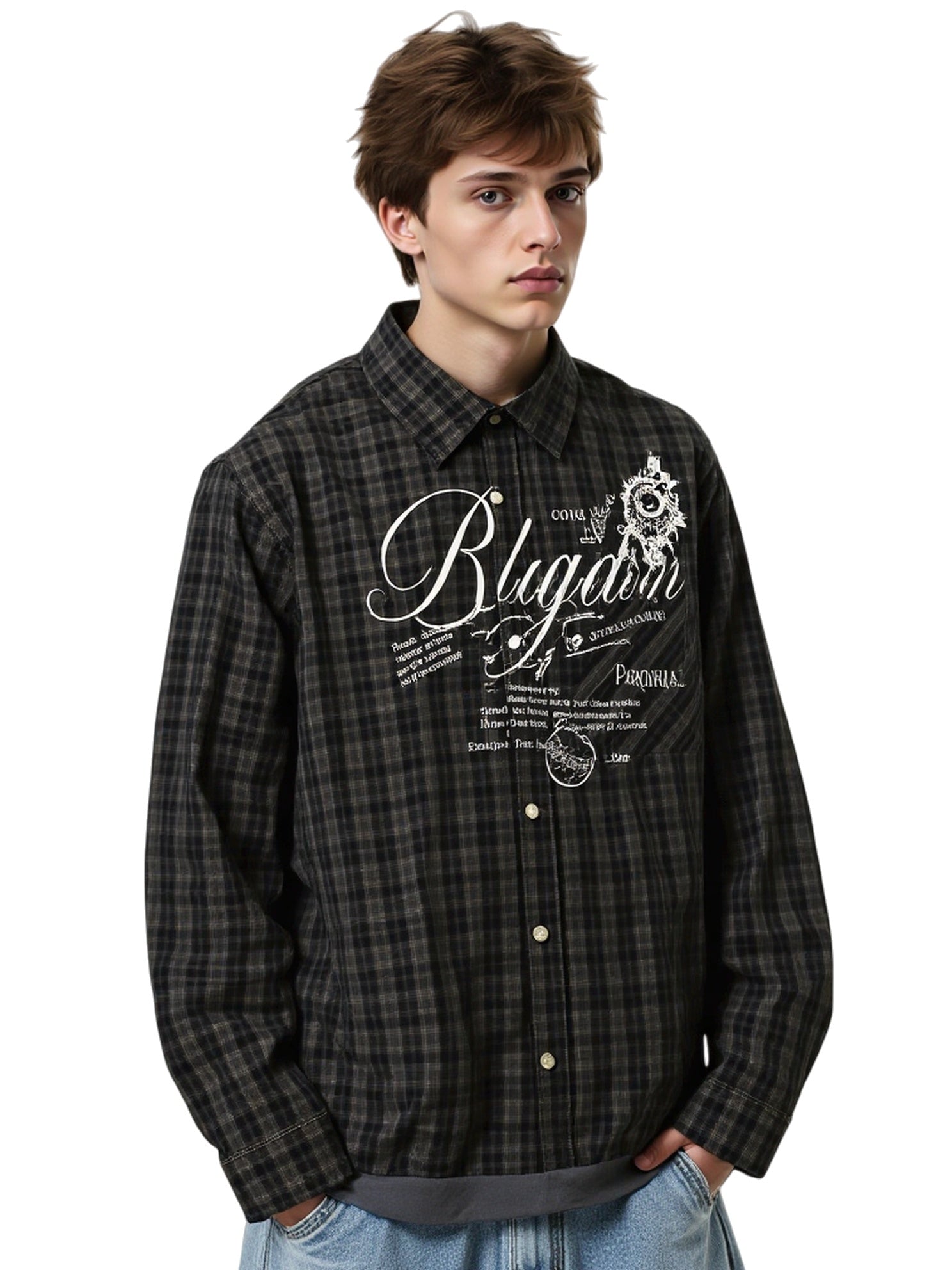 Niche Graffiti Letters Loose Plaid Long-sleeved Shirt