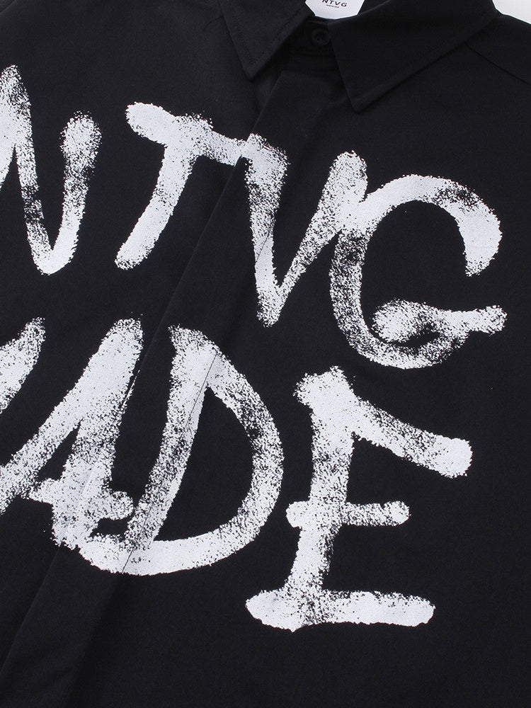 Retro Graffiti Letter Print Loose Lapel Long-sleeved Shirt