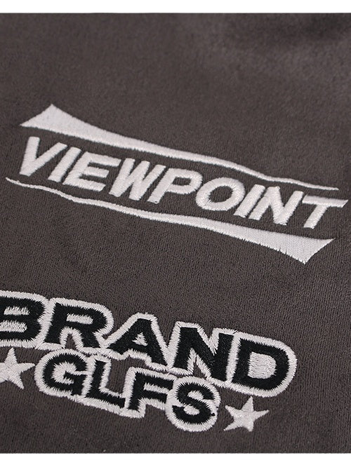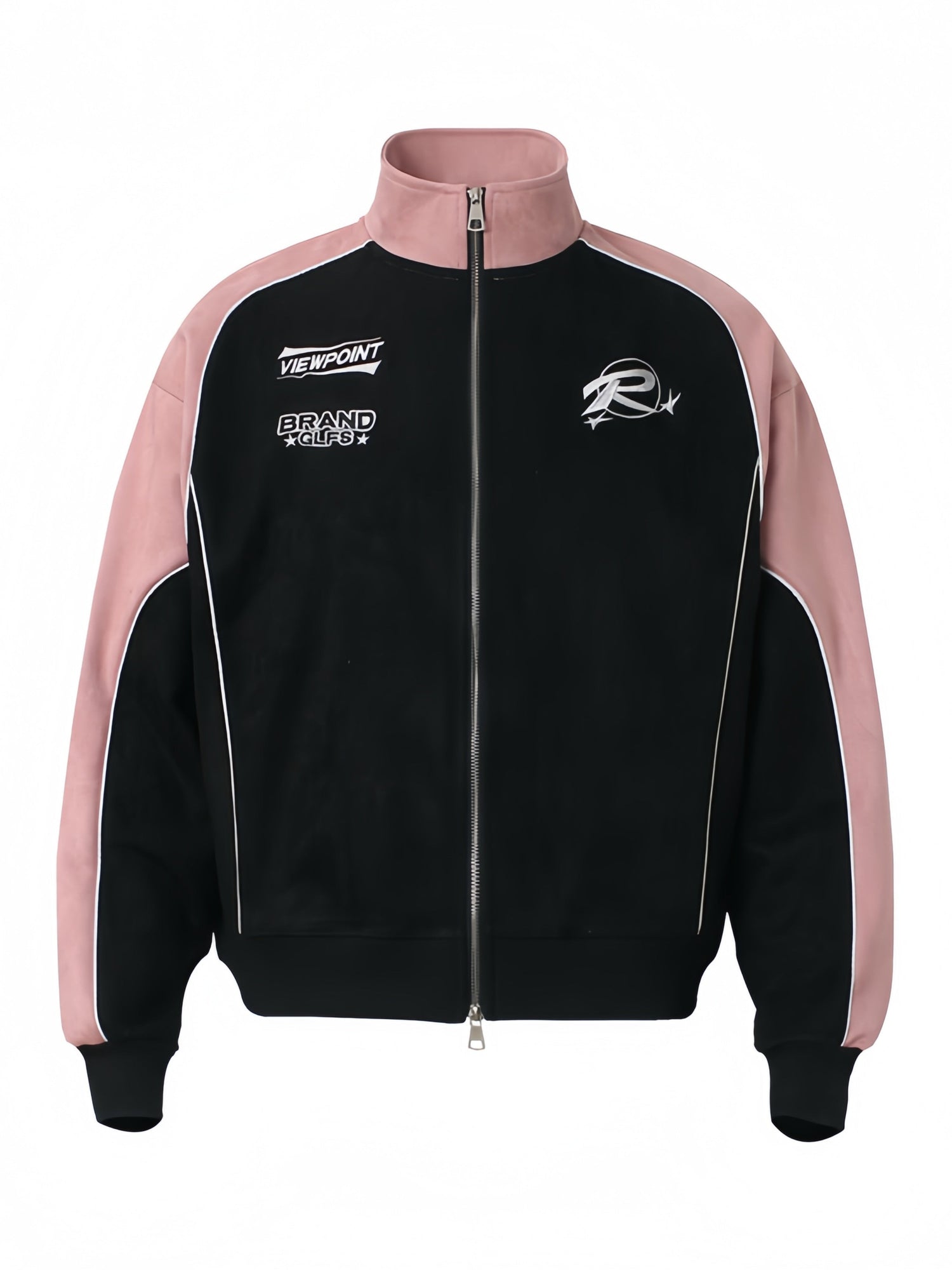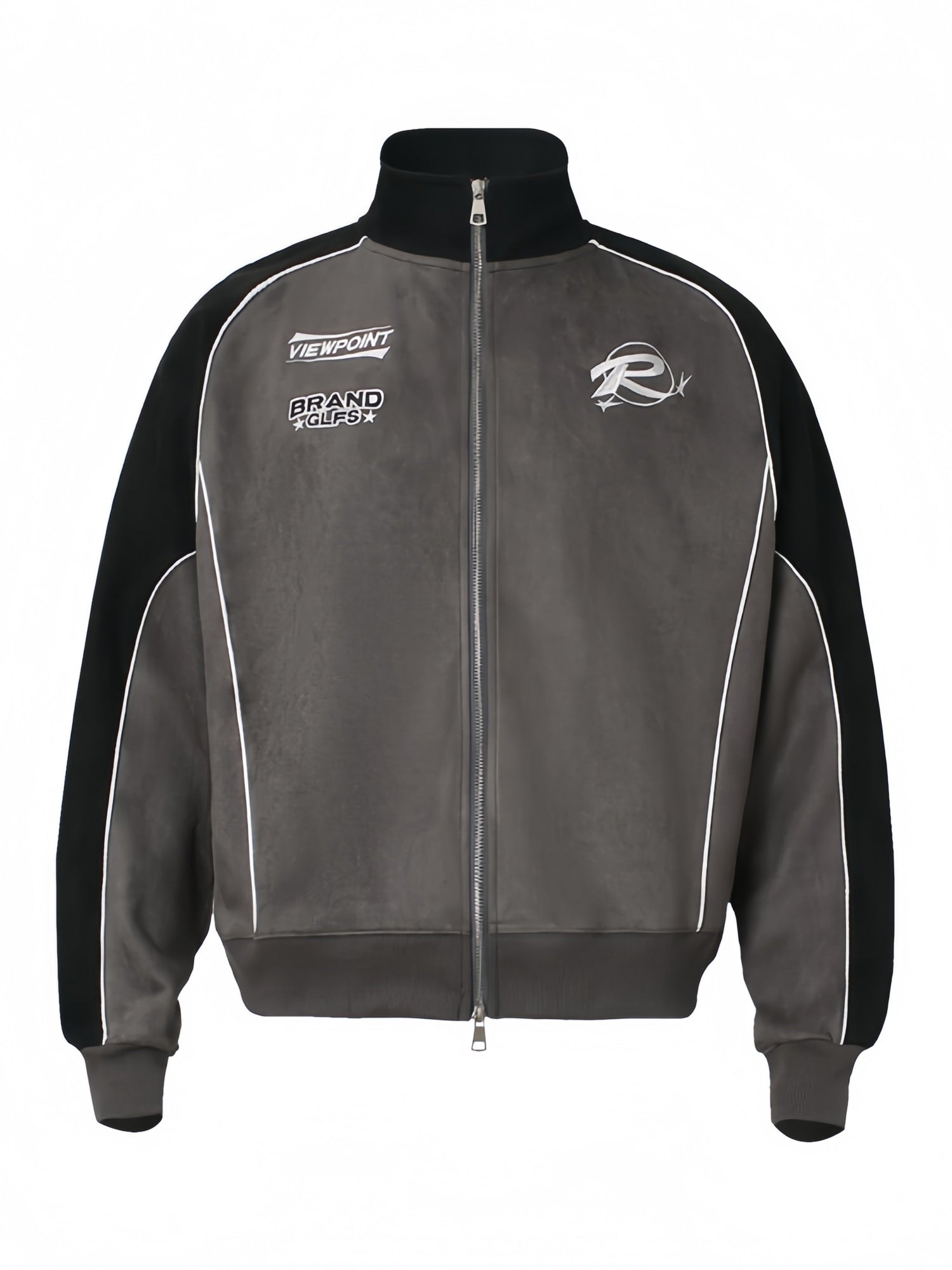 Embroidery Contrasting Colors Splicing Zipper Suede Jacket