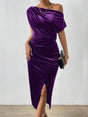 Velvet Sloping Shoulders Pleated Midi Dresses